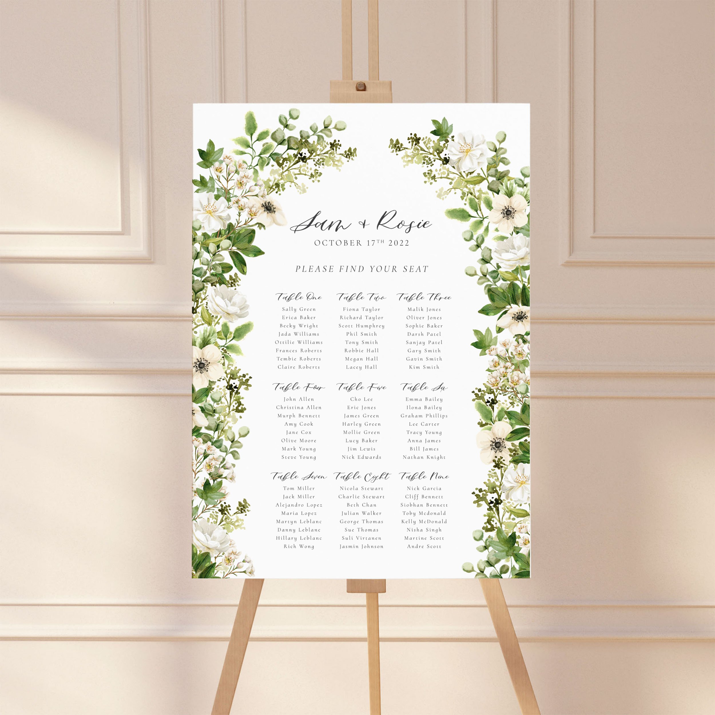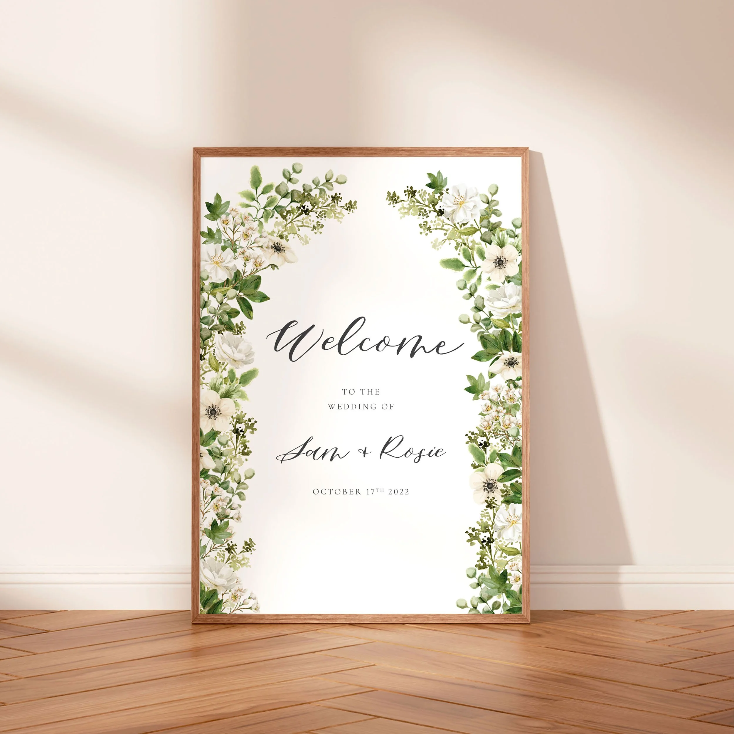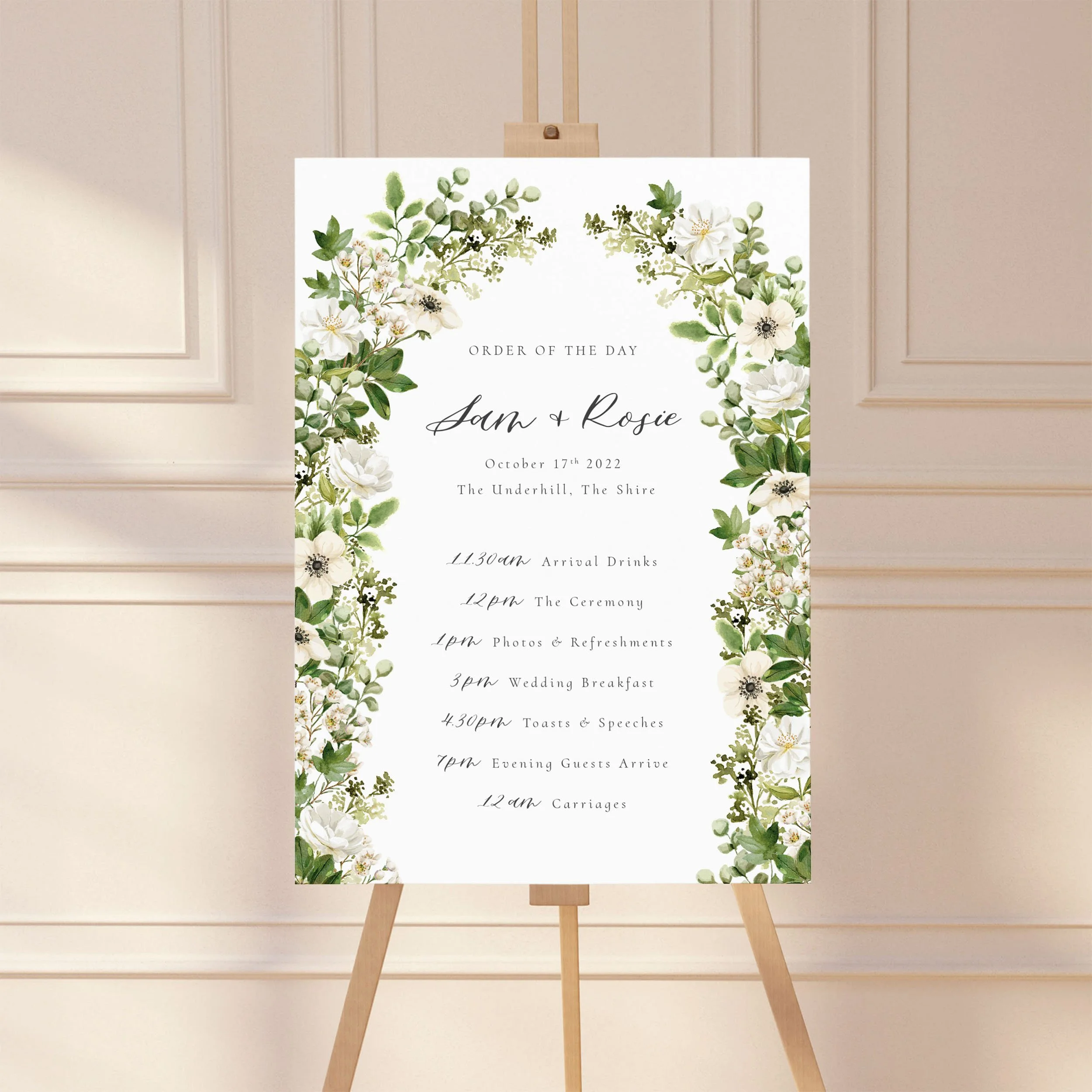 The printed Coppice bundle features rich botanical greenery and hand-painted watercolour florals in soft white tones, inspired by elegant botanical arches. Thoughtfully designed to complement your wedding theme, it brings a timeless, natural touch to your celebration.