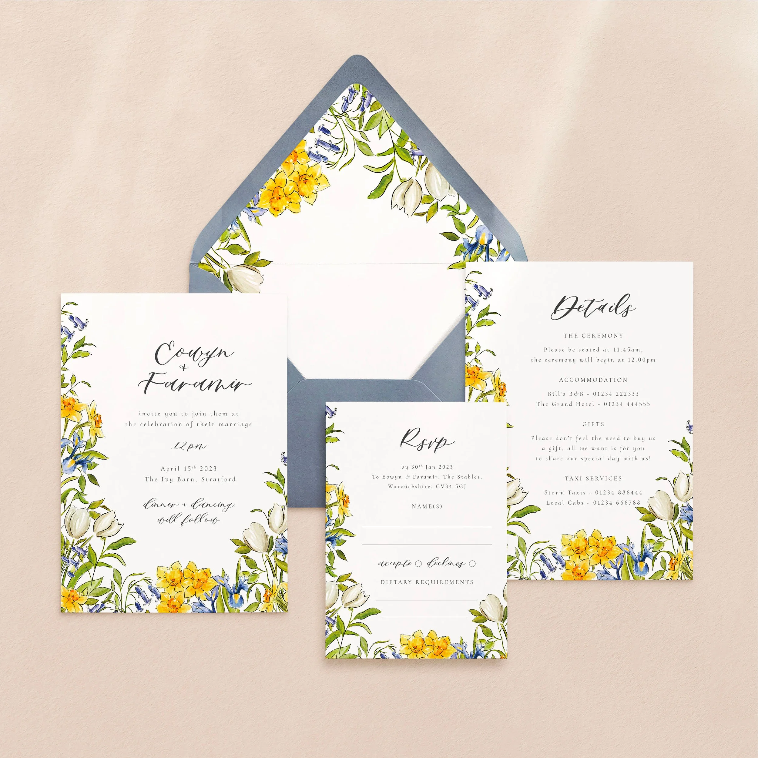 The Daffodil wedding stationery collection.