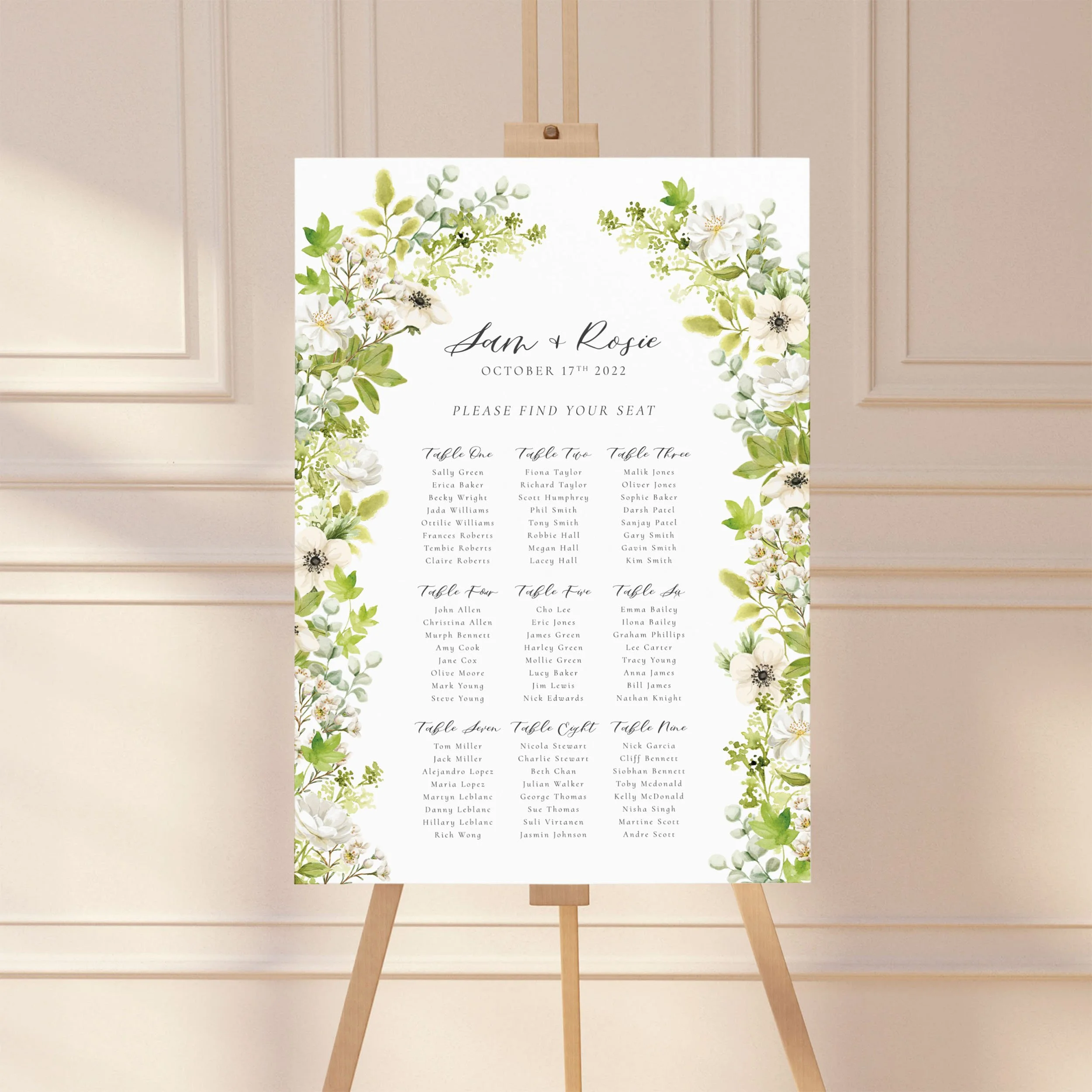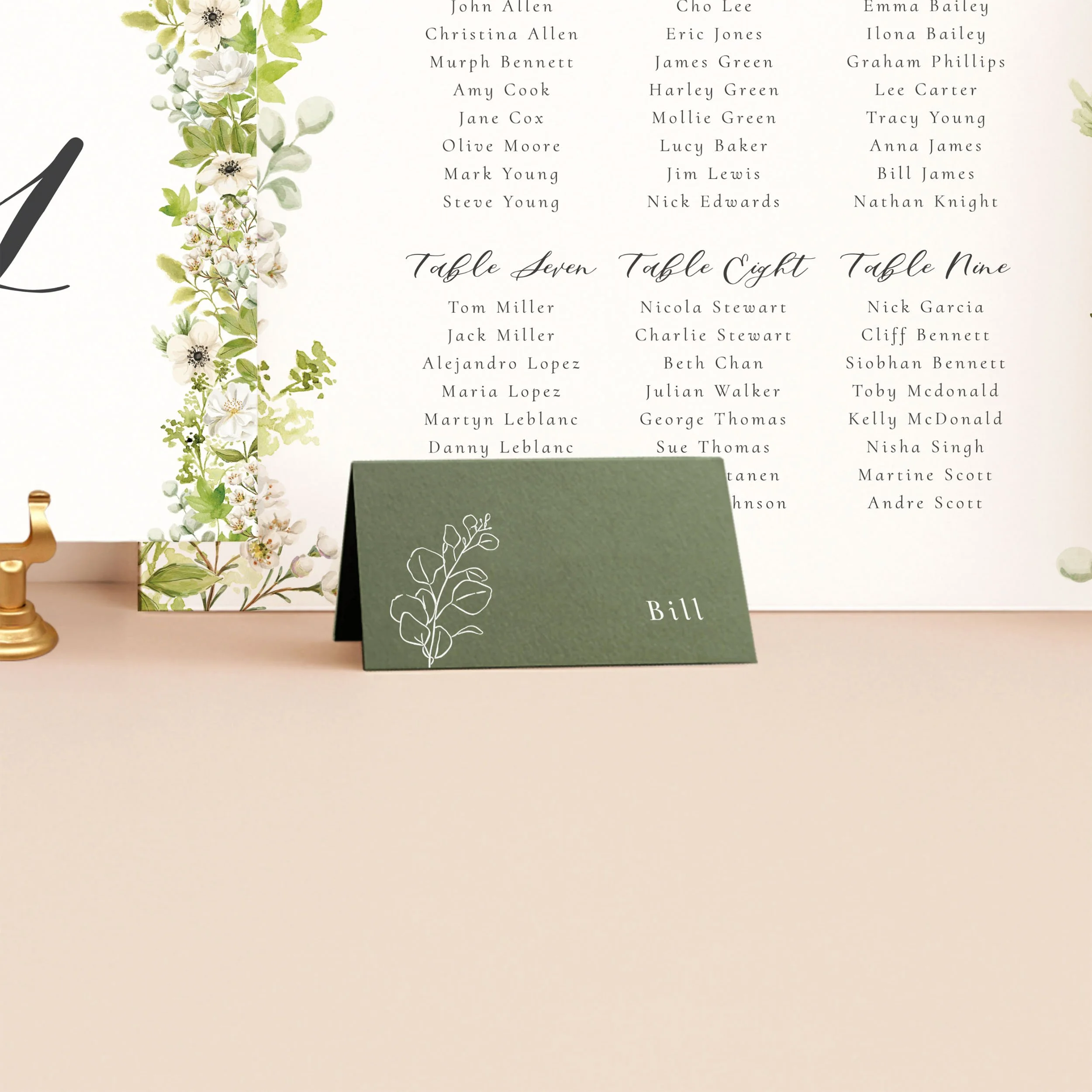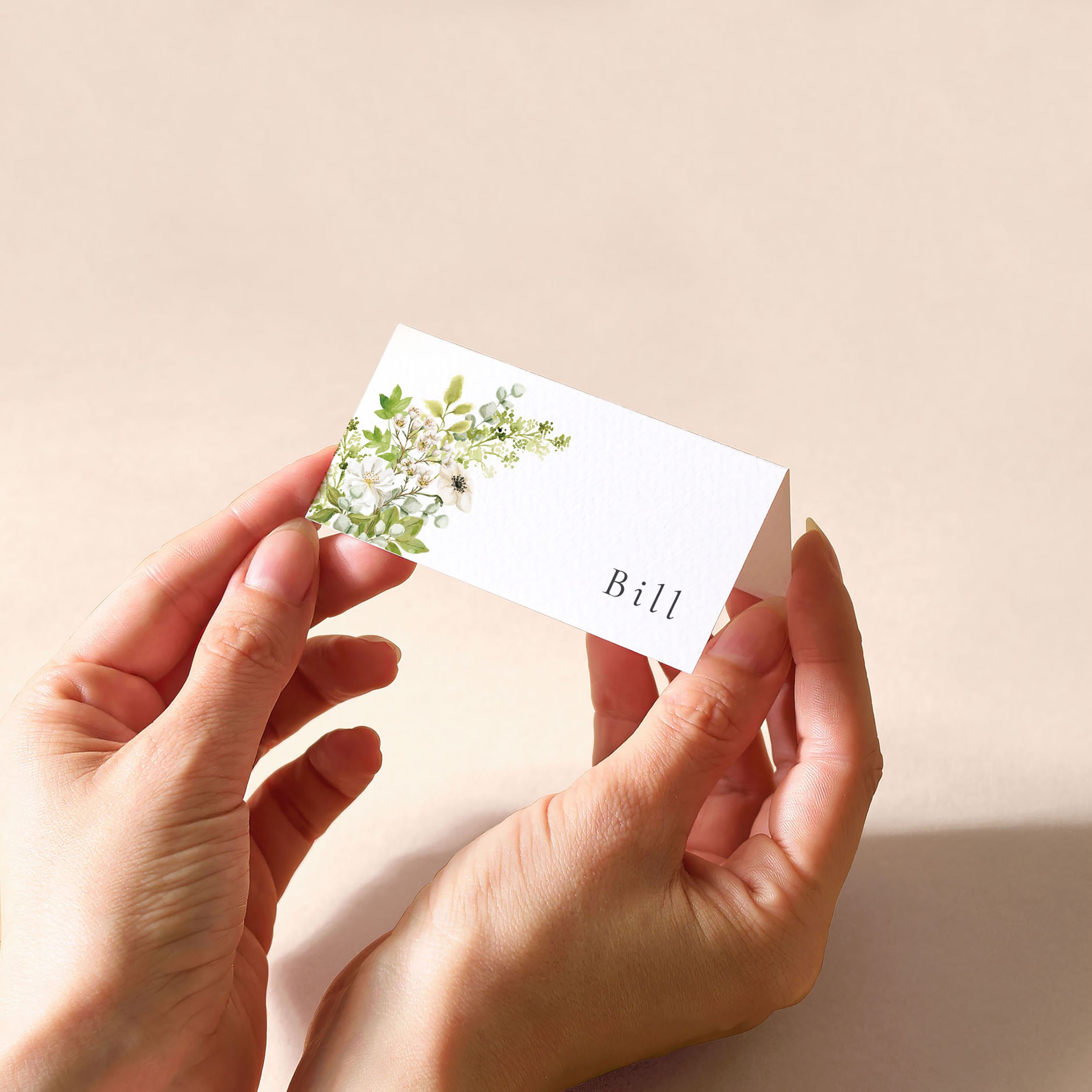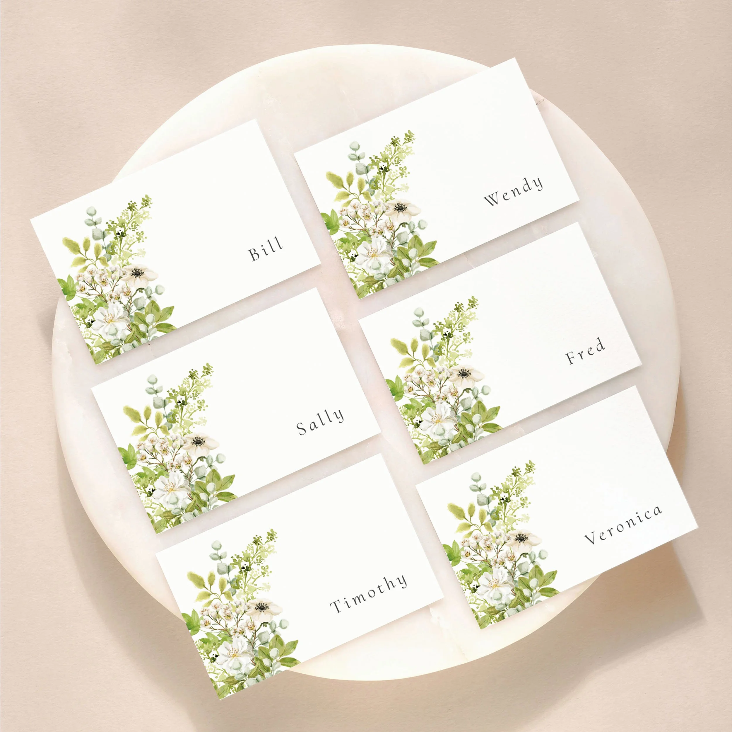 The printed English Garden bundle features lush botanical greenery and hand-painted watercolour florals in soft white tones, inspired by elegant botanical arches. Thoughtfully designed to complement your wedding theme, it brings a timeless, natural touch to your celebration.