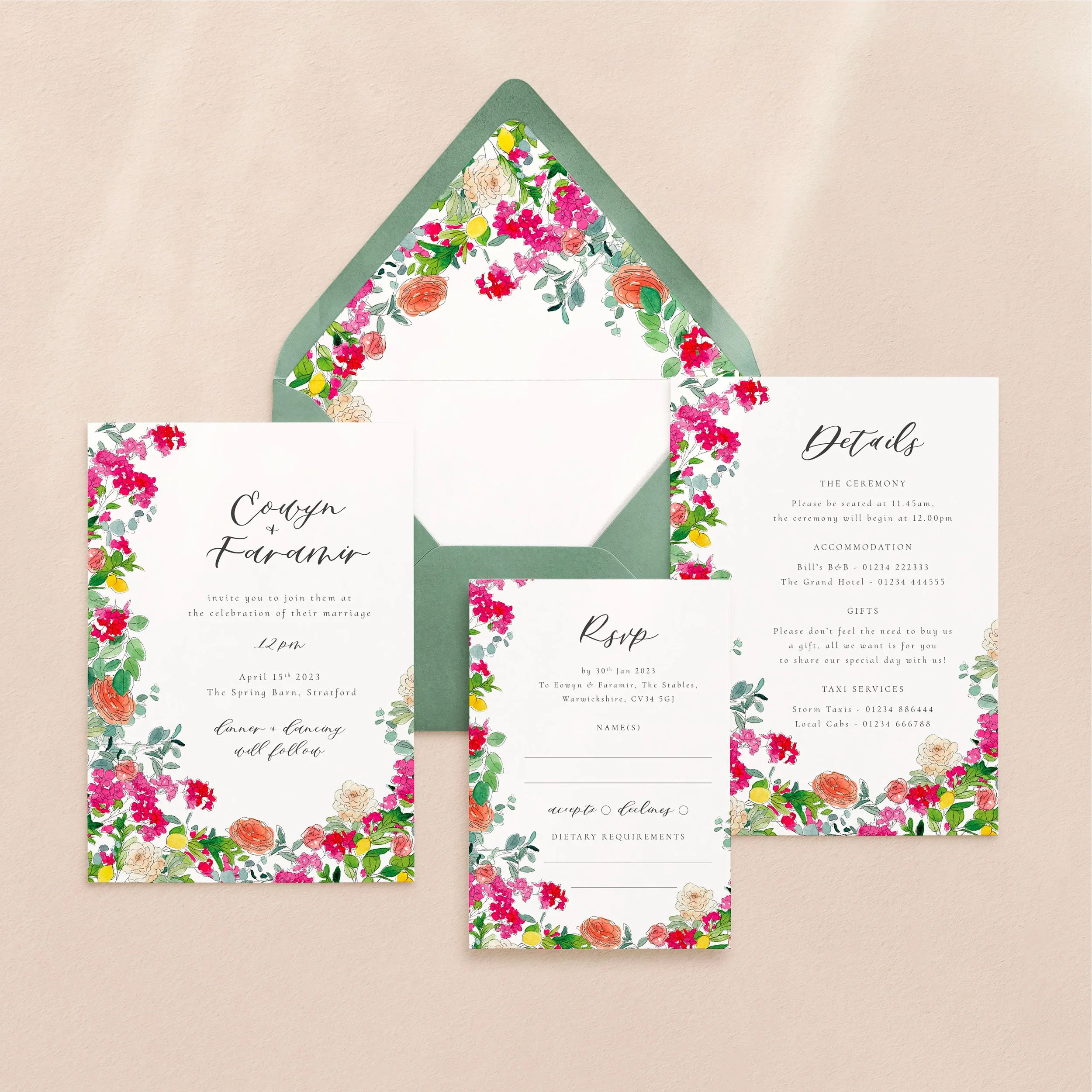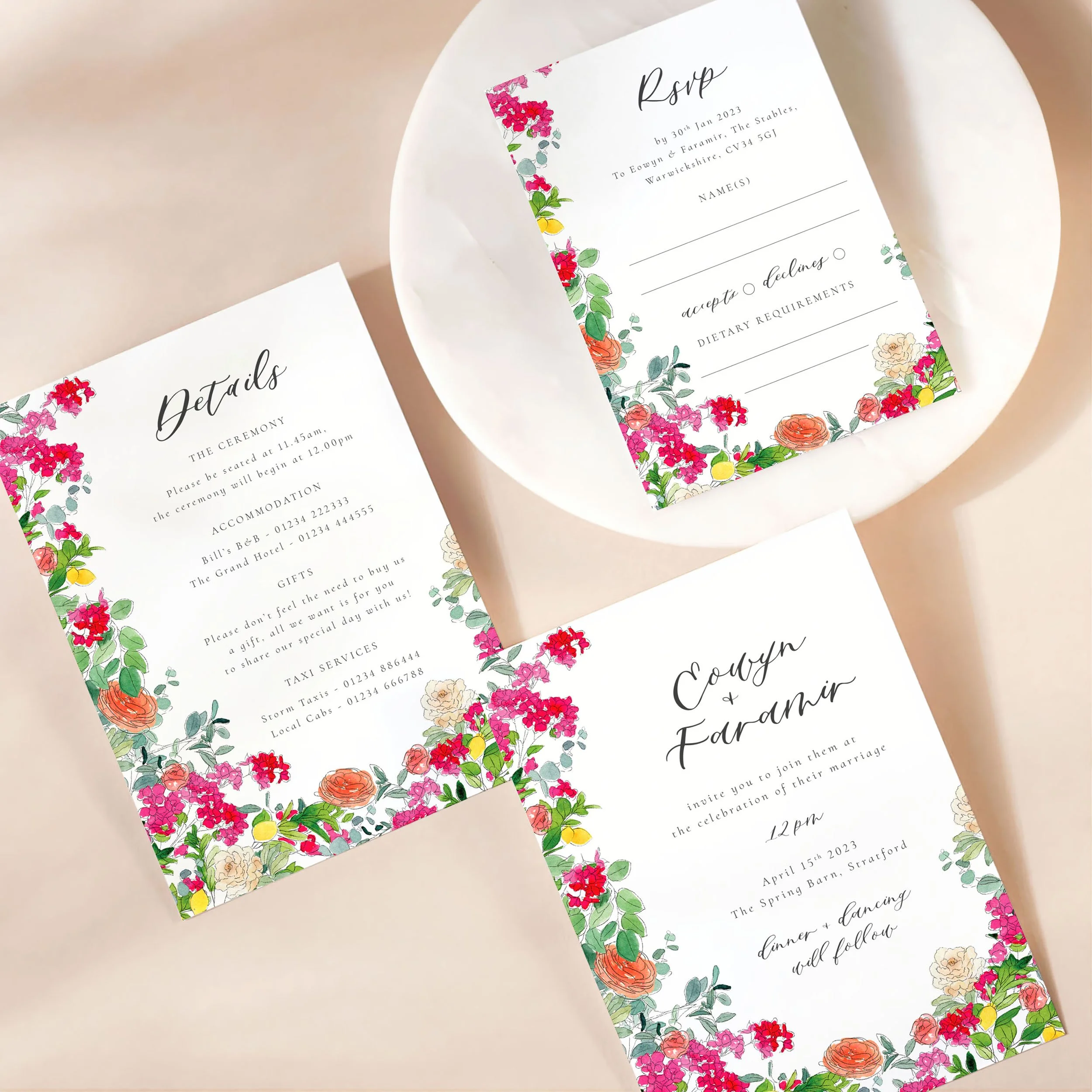 Invitation (5x7”), Details (5x7”) & RSVP (A6)