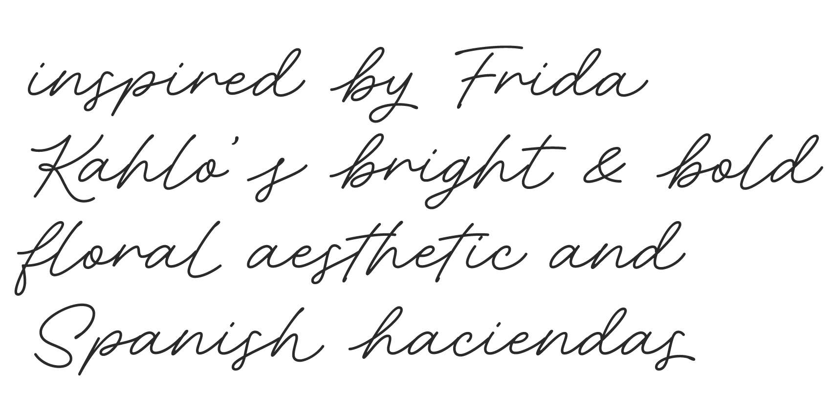 Drawing inspiration from Frida Kahlo’s bold, floral aesthetic, this maximalist design by Kim at Pingle Pie is ideal for bright and bold weddings in artistic spaces with high ceilings, colourful gardens, Spanish haciendas, or sun-filled Mediterranean-style homes.