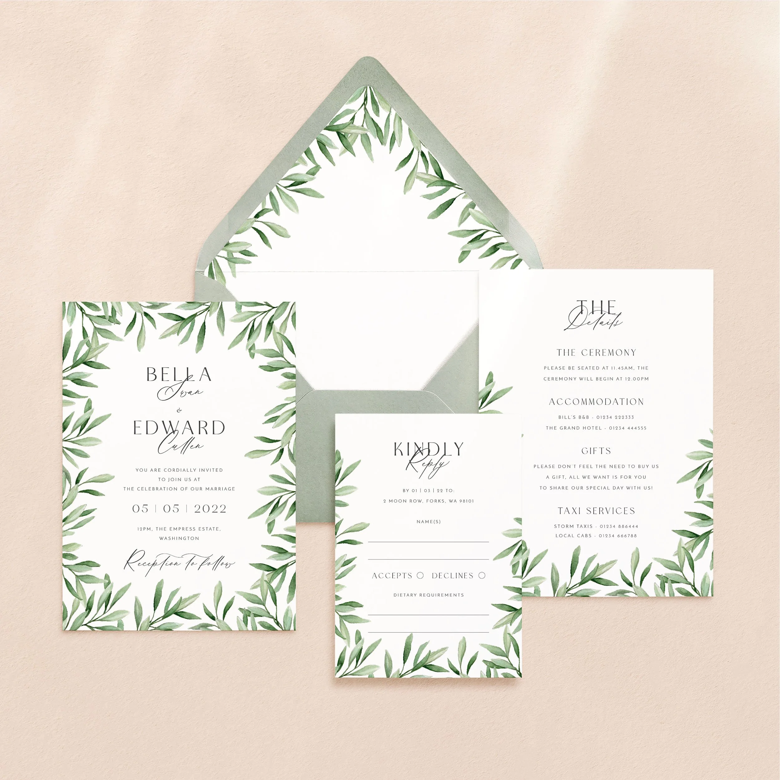 Invitation (5x7”), Details (5x7”) & RSVP (A6)
