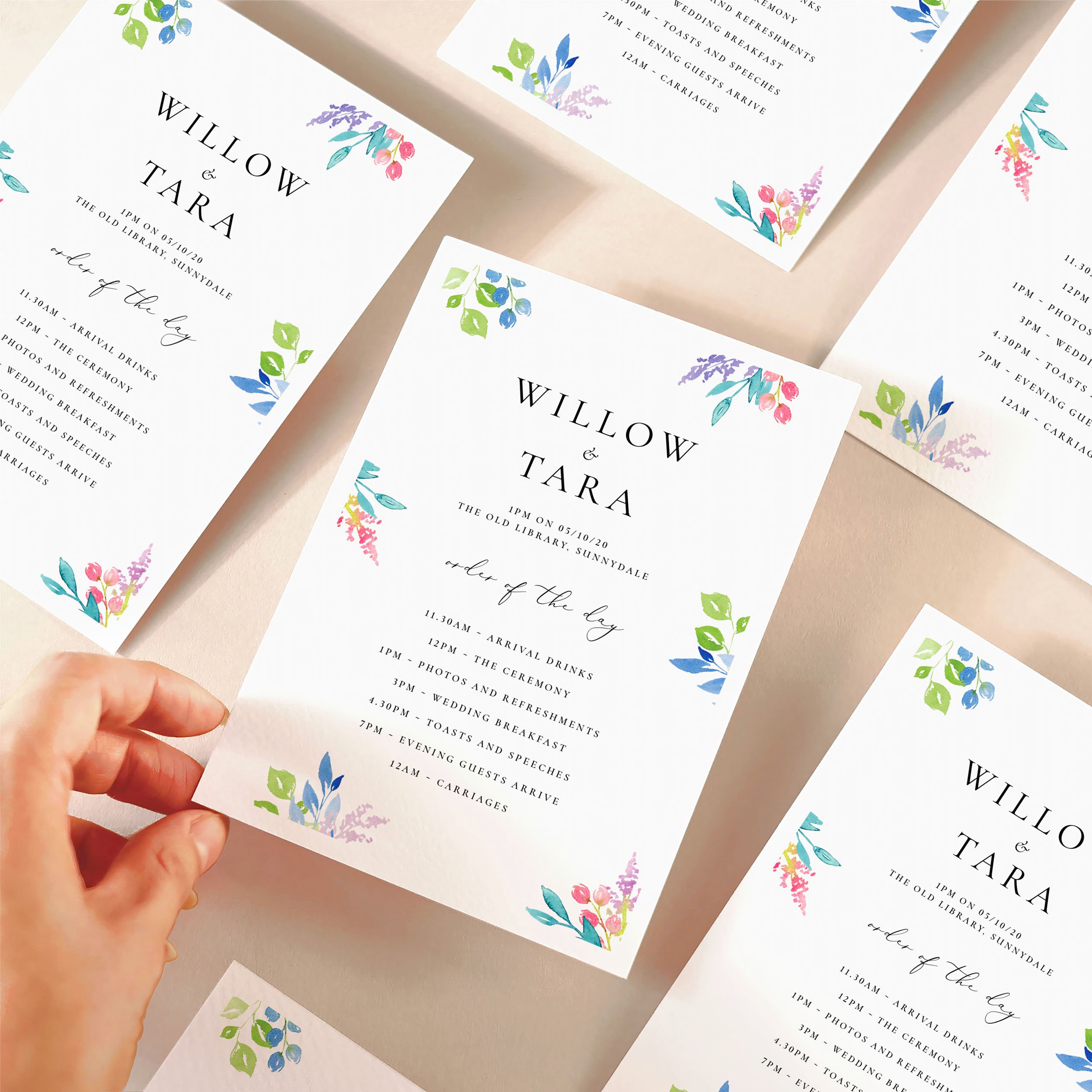 This colourful design by Kim at Pingle Pie is perfect for nature and animal lovers, it was inspired by bright and bold ceremonies held in animal themed settings such as animal parks, museums and even used for a ceremony held at Boston Zoo. Order your very own collection today by using the form at the bottom of this page.