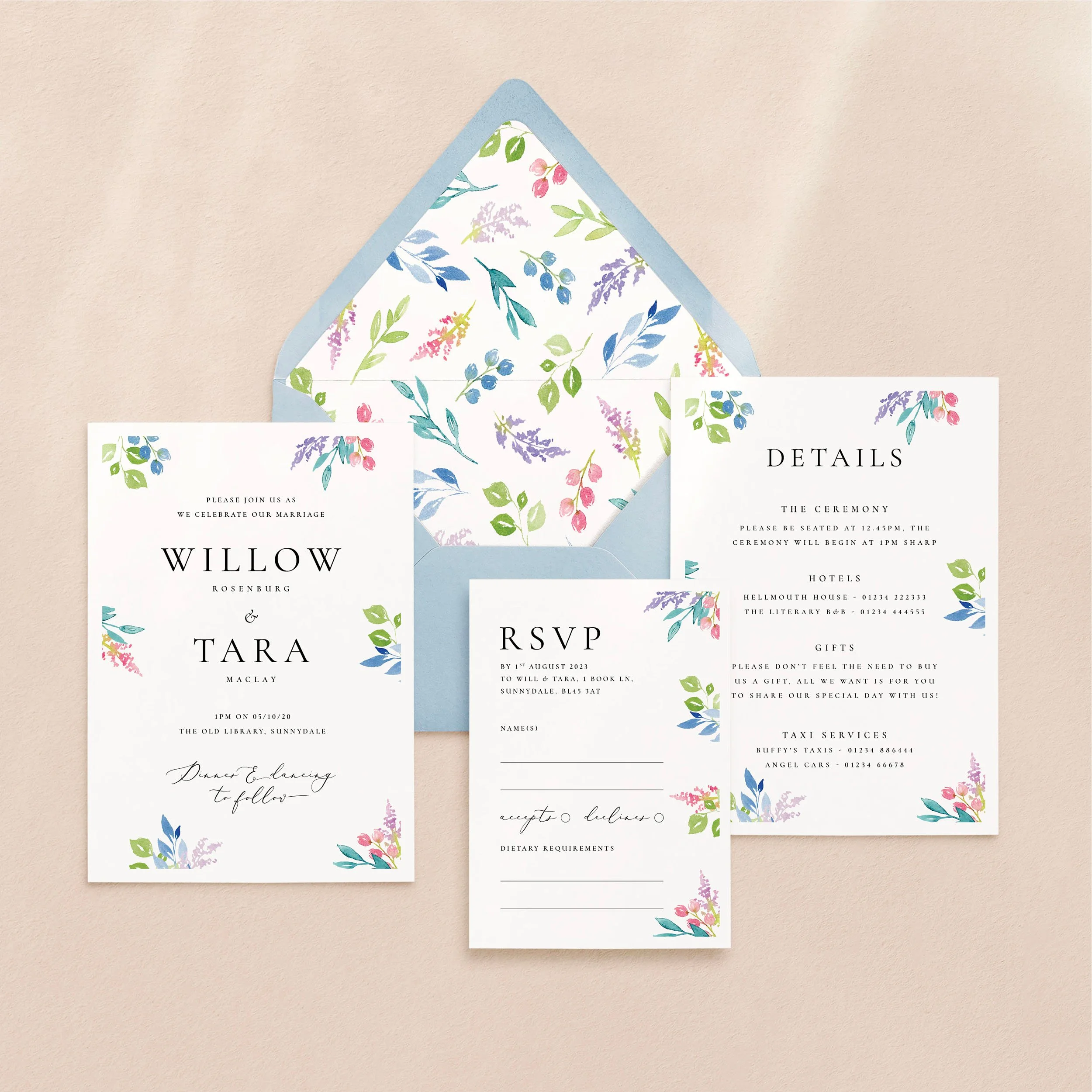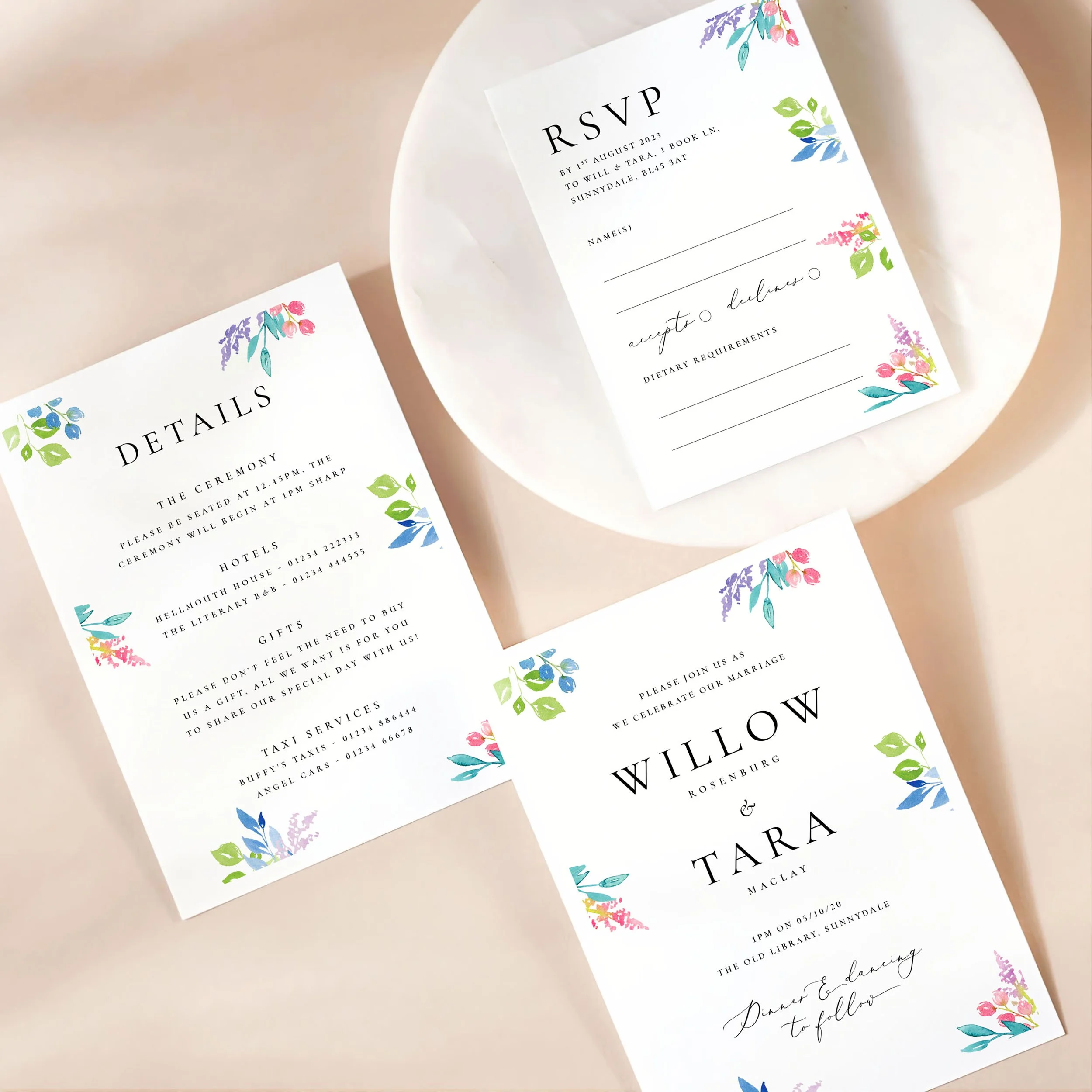 Invitation (5x7”), Details (5x7”) & RSVP (A6)