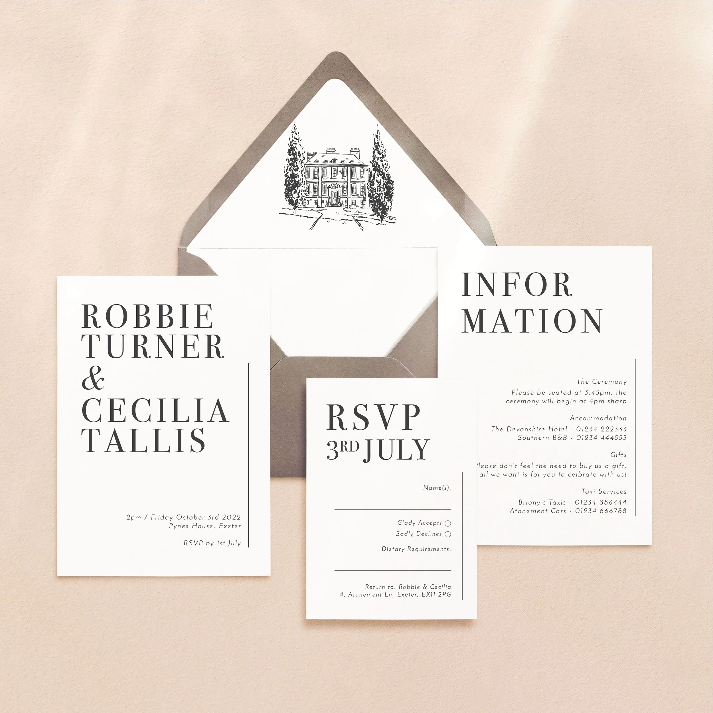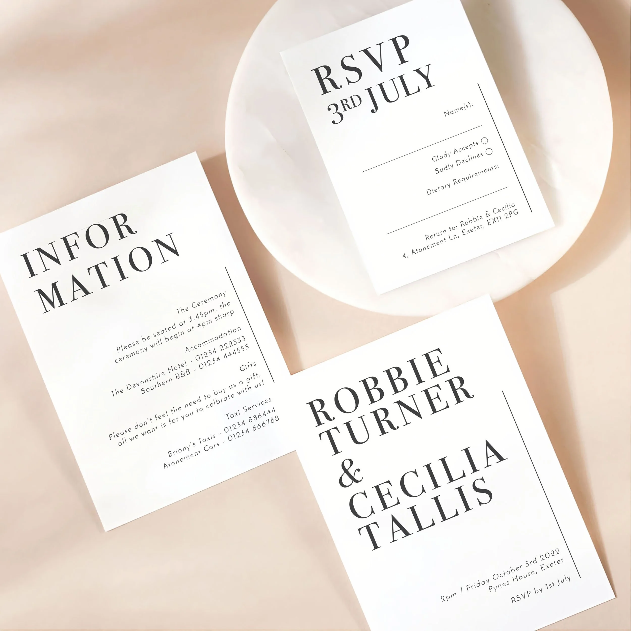 Invitation (5x7”), Details (5x7”) & RSVP (A6)