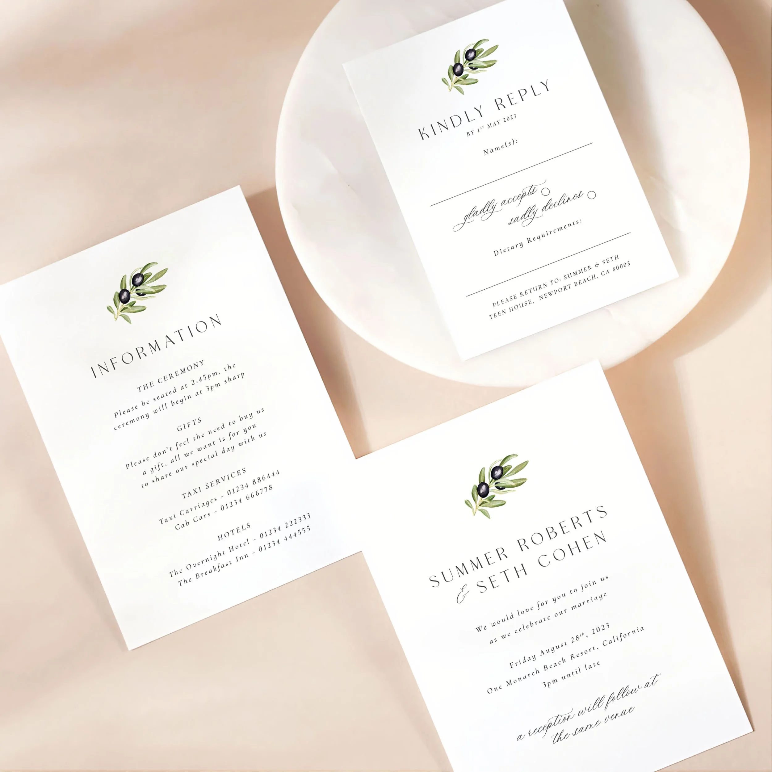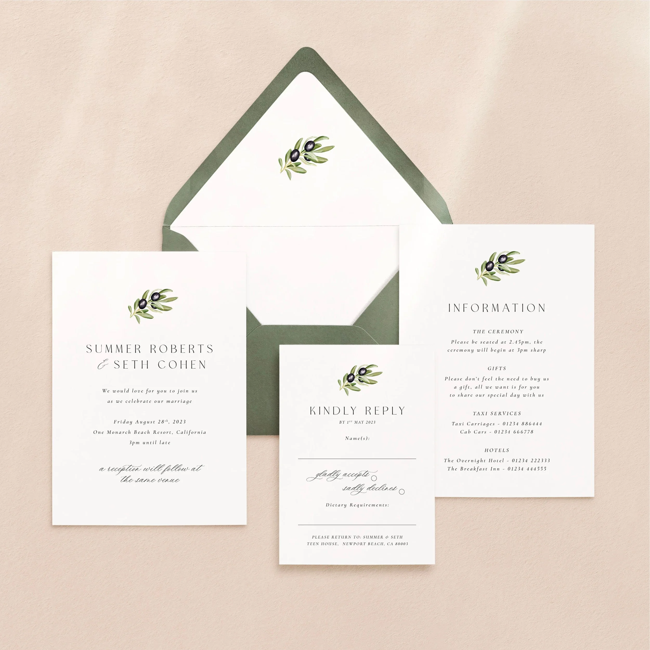 The Olive wedding stationery collection.