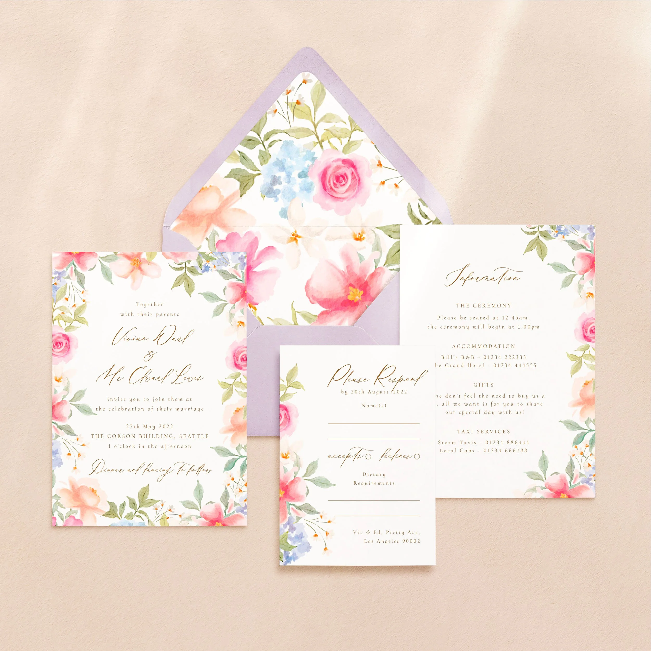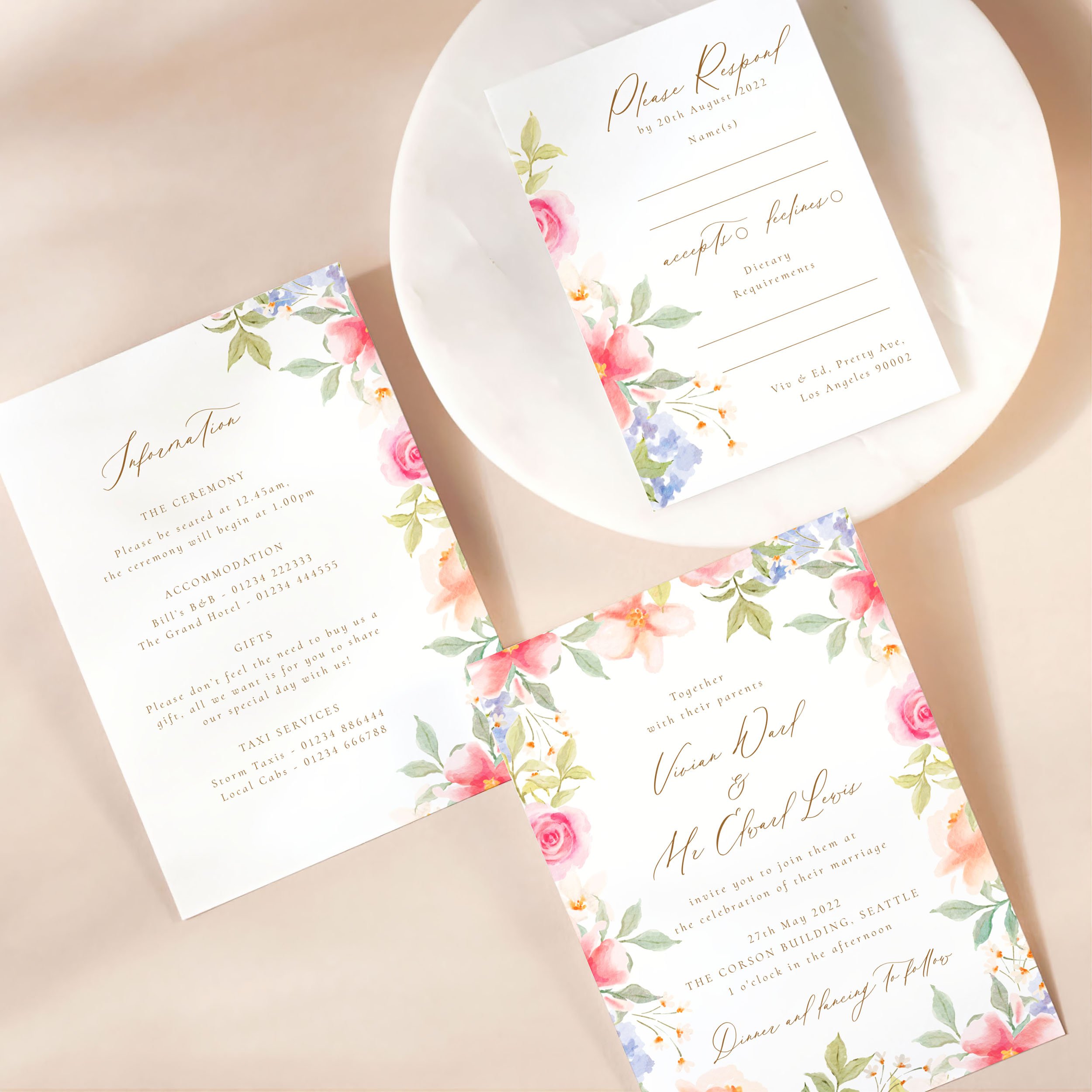 Invitation (5x7”), Details (5x7”) & RSVP (A6)