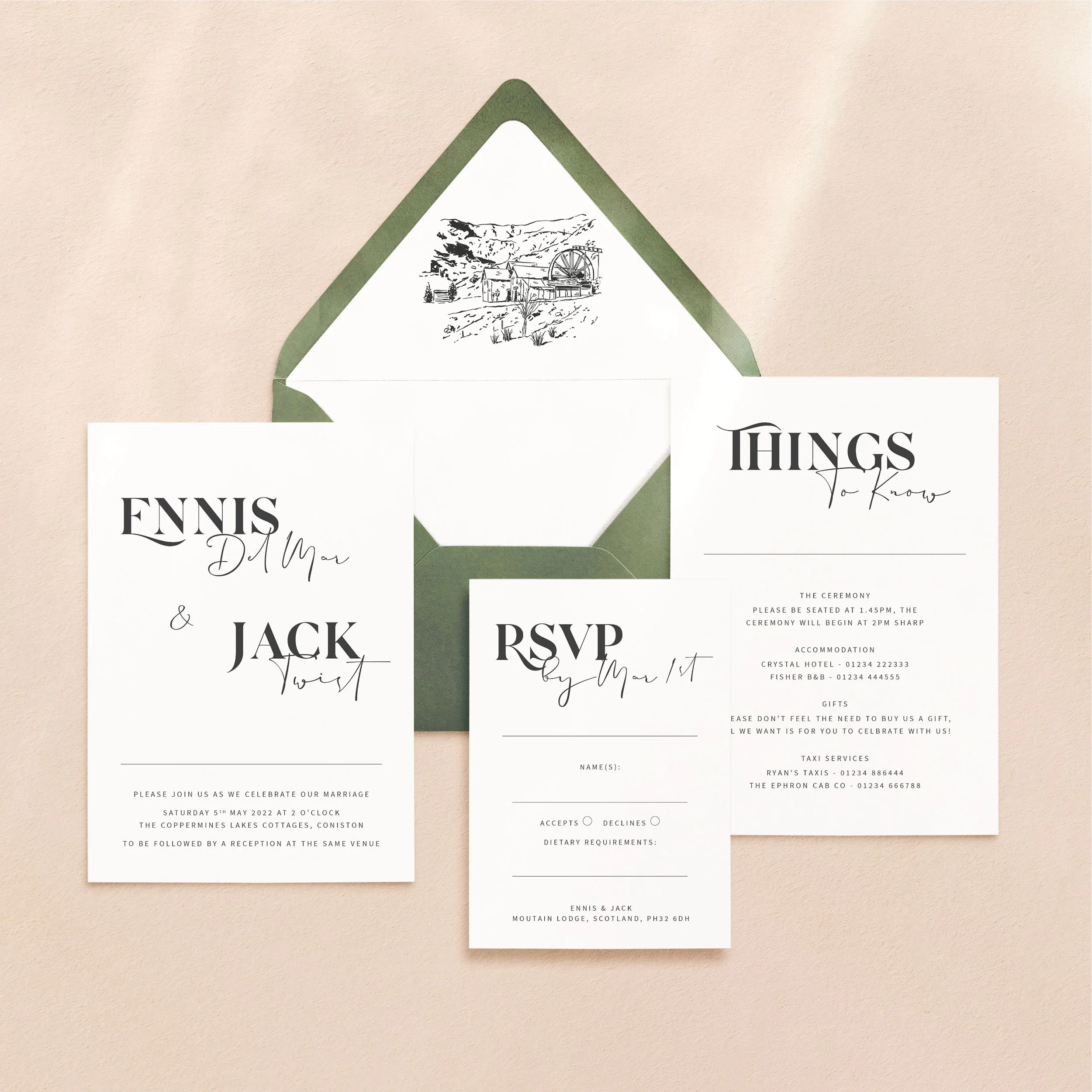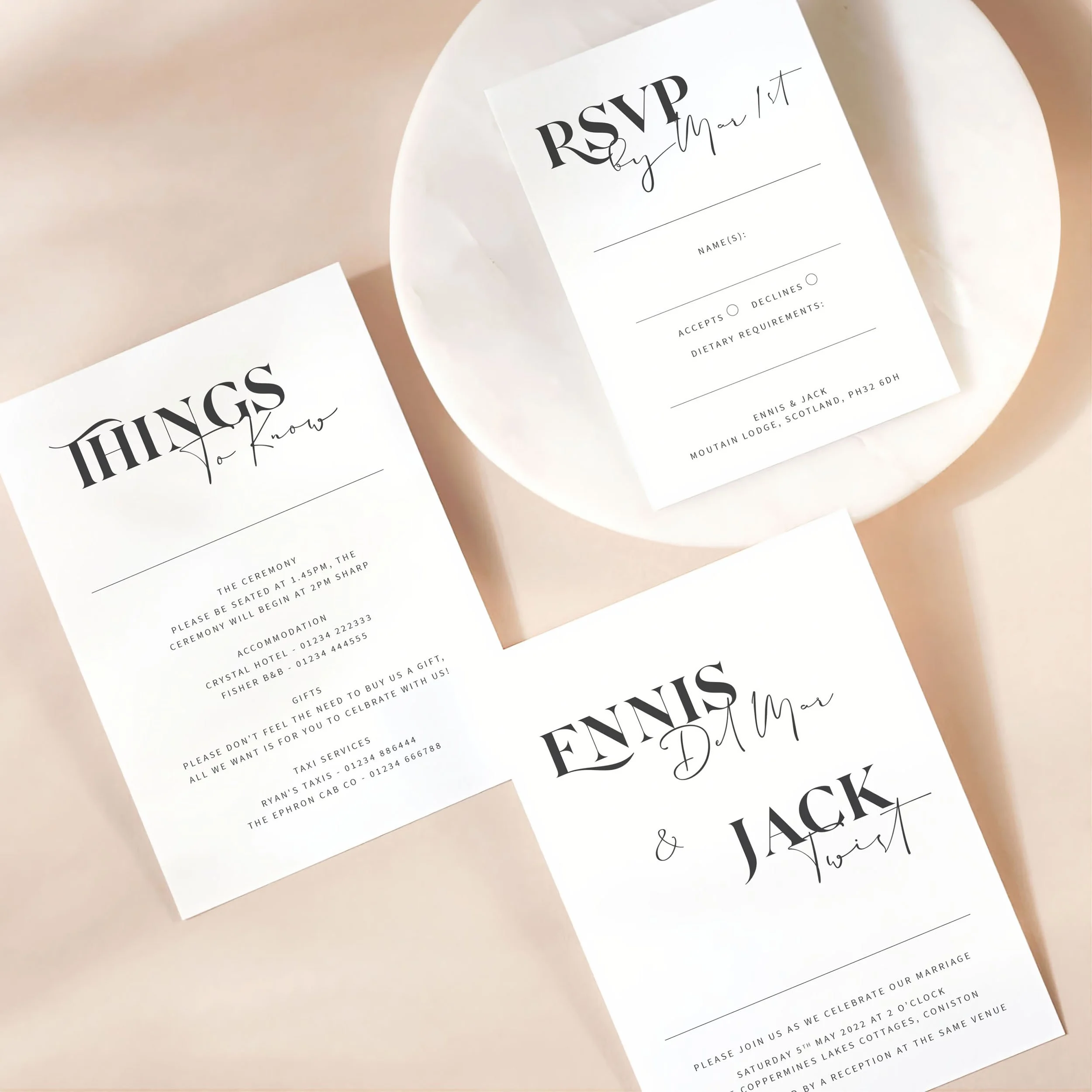 Invitation (5x7”), Details (5x7”) & RSVP (A6)