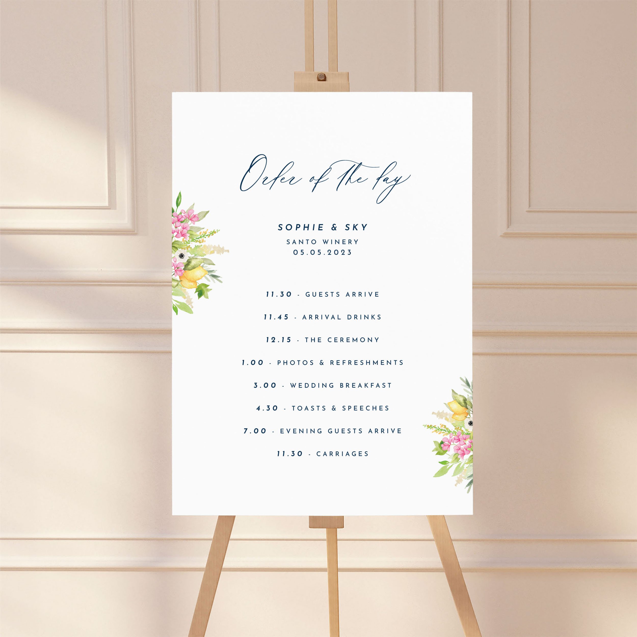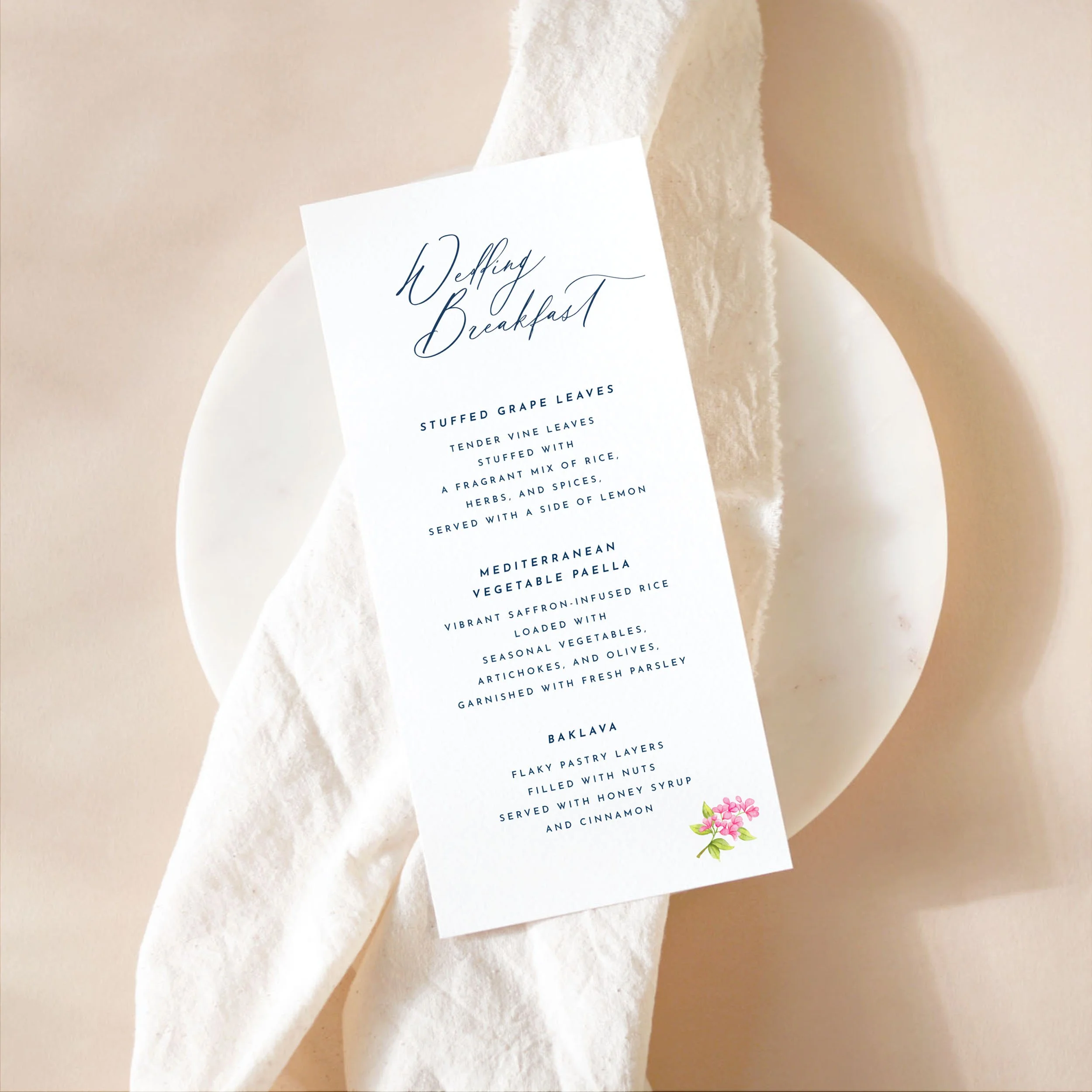 This collection features a clean, modern design with hand-painted illustrations of vibrant bougainvillea and bright lemons. Minimal and elegant, it’s the perfect addition to your sun-soaked Santorini wedding.
