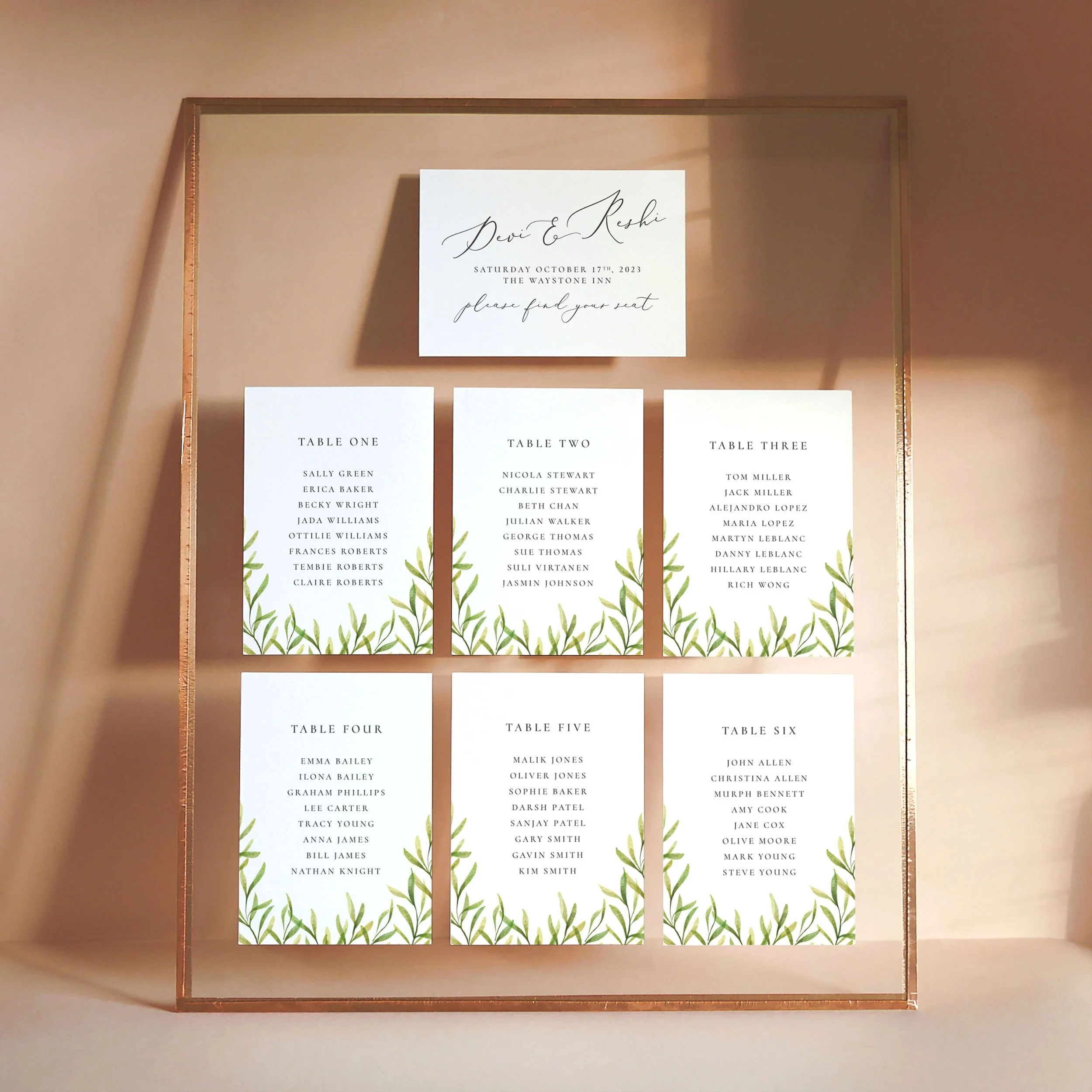 This printed suite features light, airy florals and hand-painted watercolour greenery, inspired by the fresh tones of spring. Thoughtfully designed to beautifully complement your wedding decor, it brings a soft, natural elegance to your celebration.