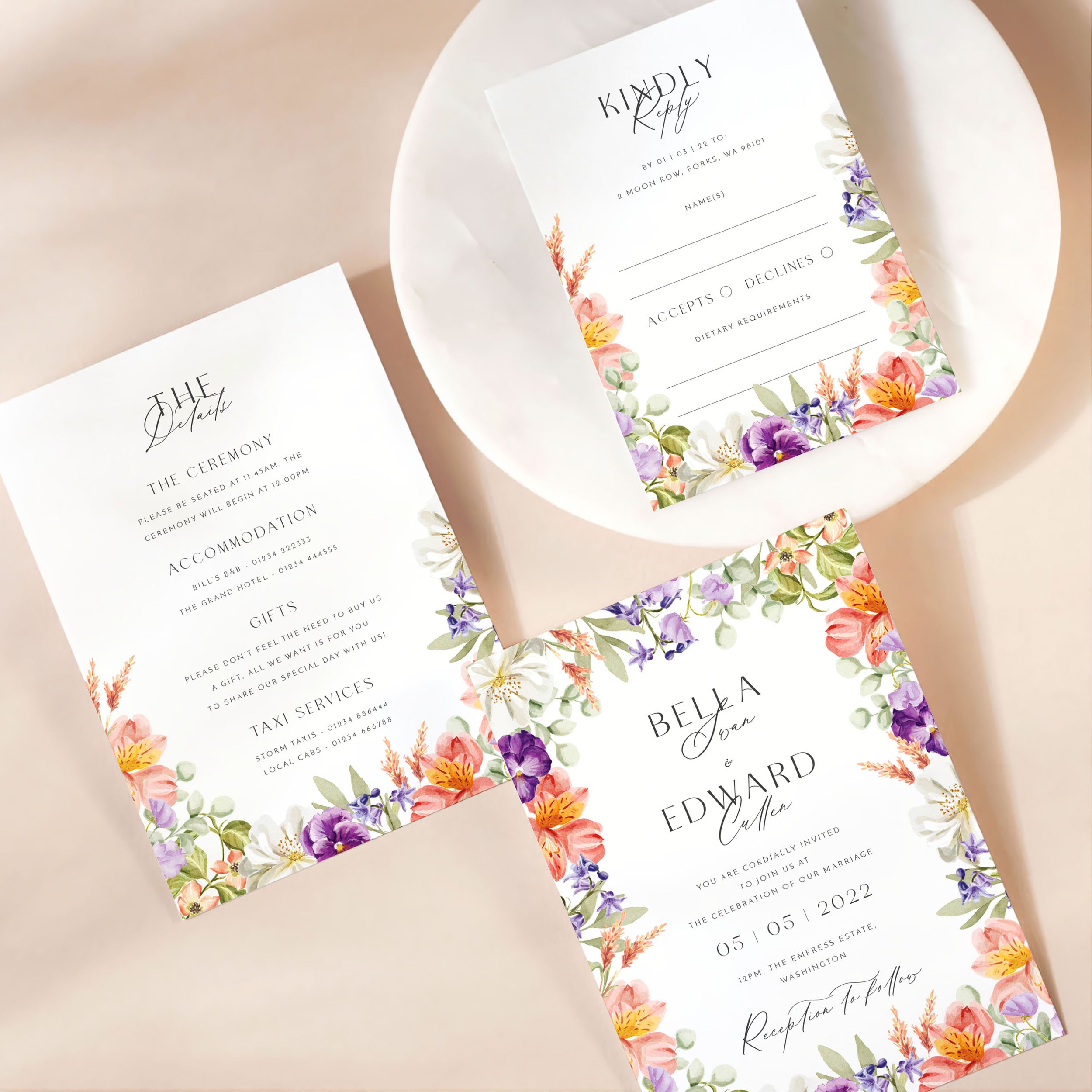 Invitation (5x7”), Details (5x7”) & RSVP (A6)