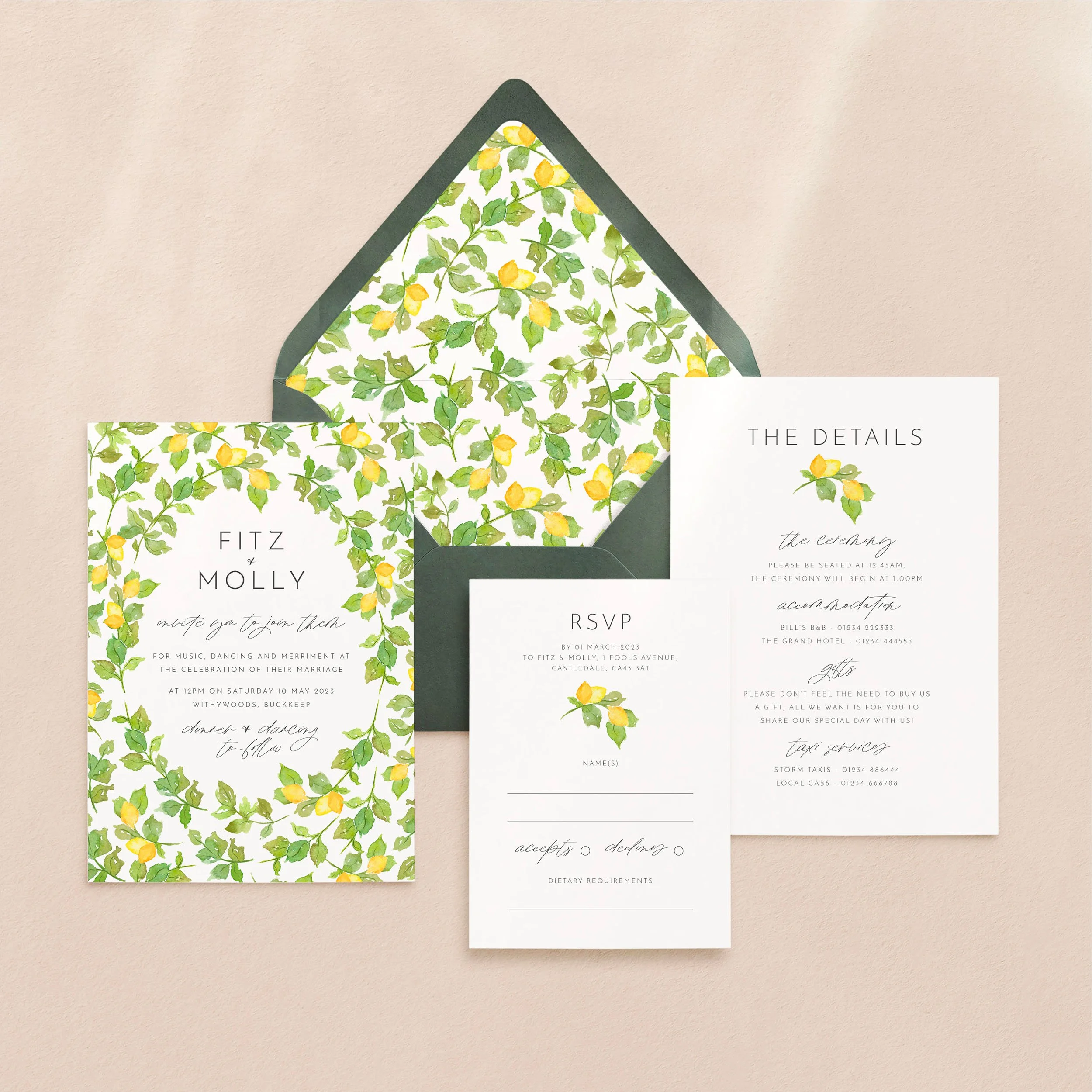 Invitation (5x7”), Details (5x7”) & RSVP (A6)