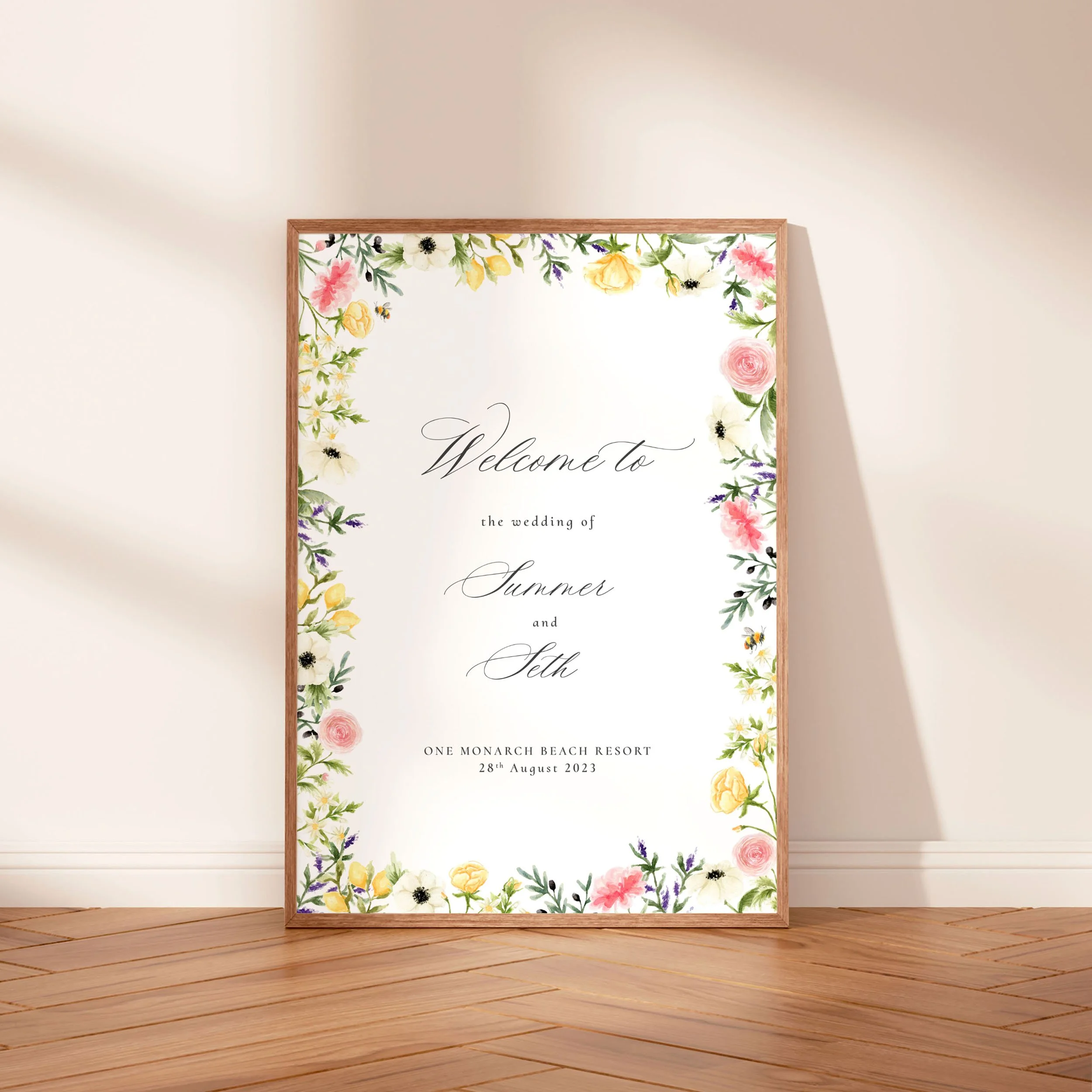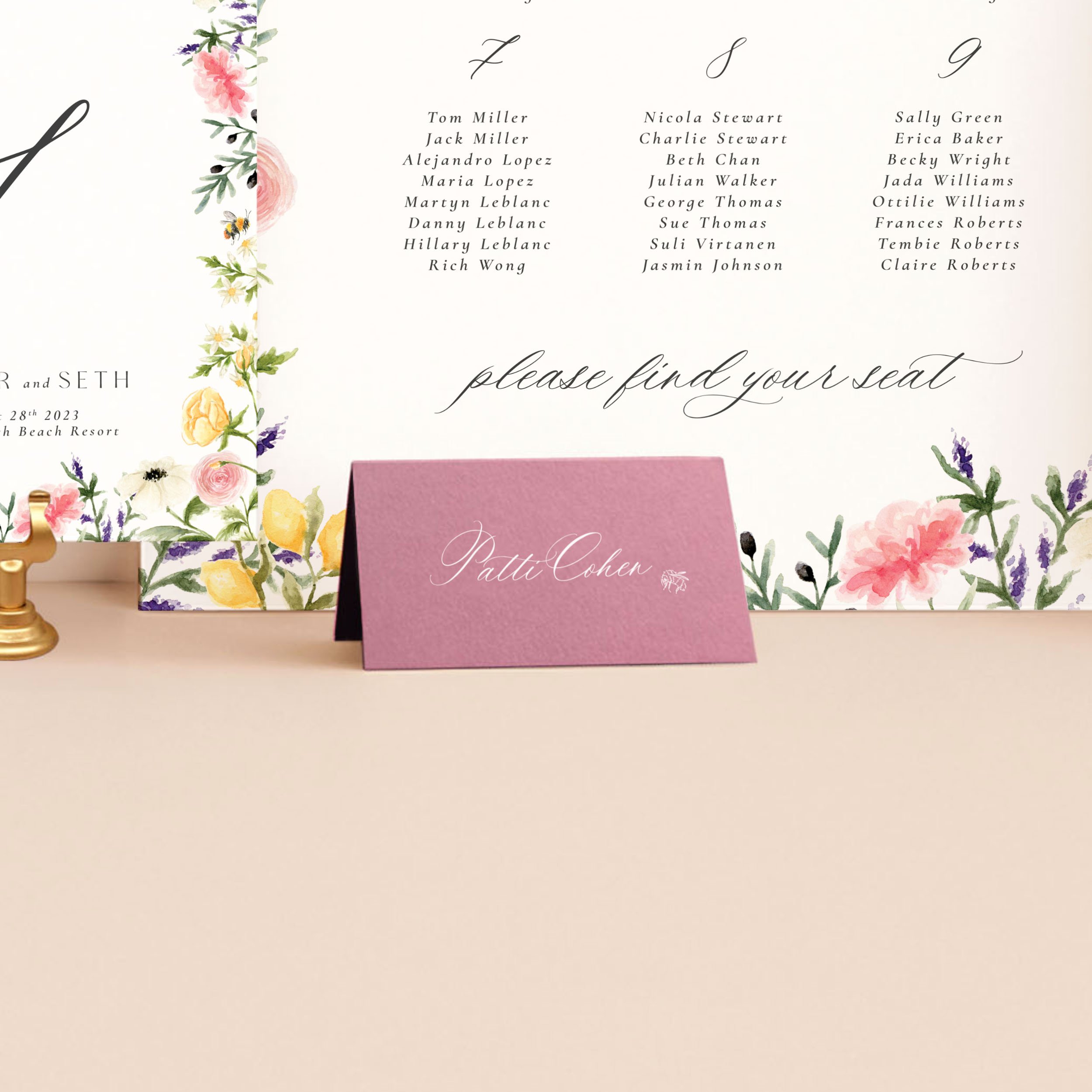 This printed bundle, with rich burgundy florals and lush hand-painted watercolour greenery, includes all the essential stationery for your wedding reception, plus include a welcome sign and order of the day timeline at a discounted price when you order this bundle.