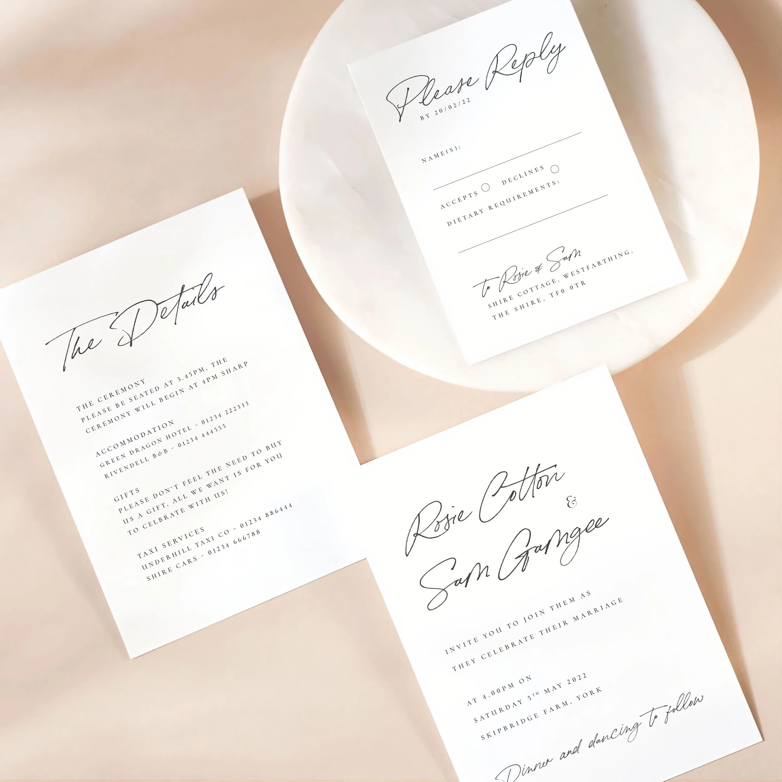 Invitation (5x7”), Details (5x7”) & RSVP (A6)