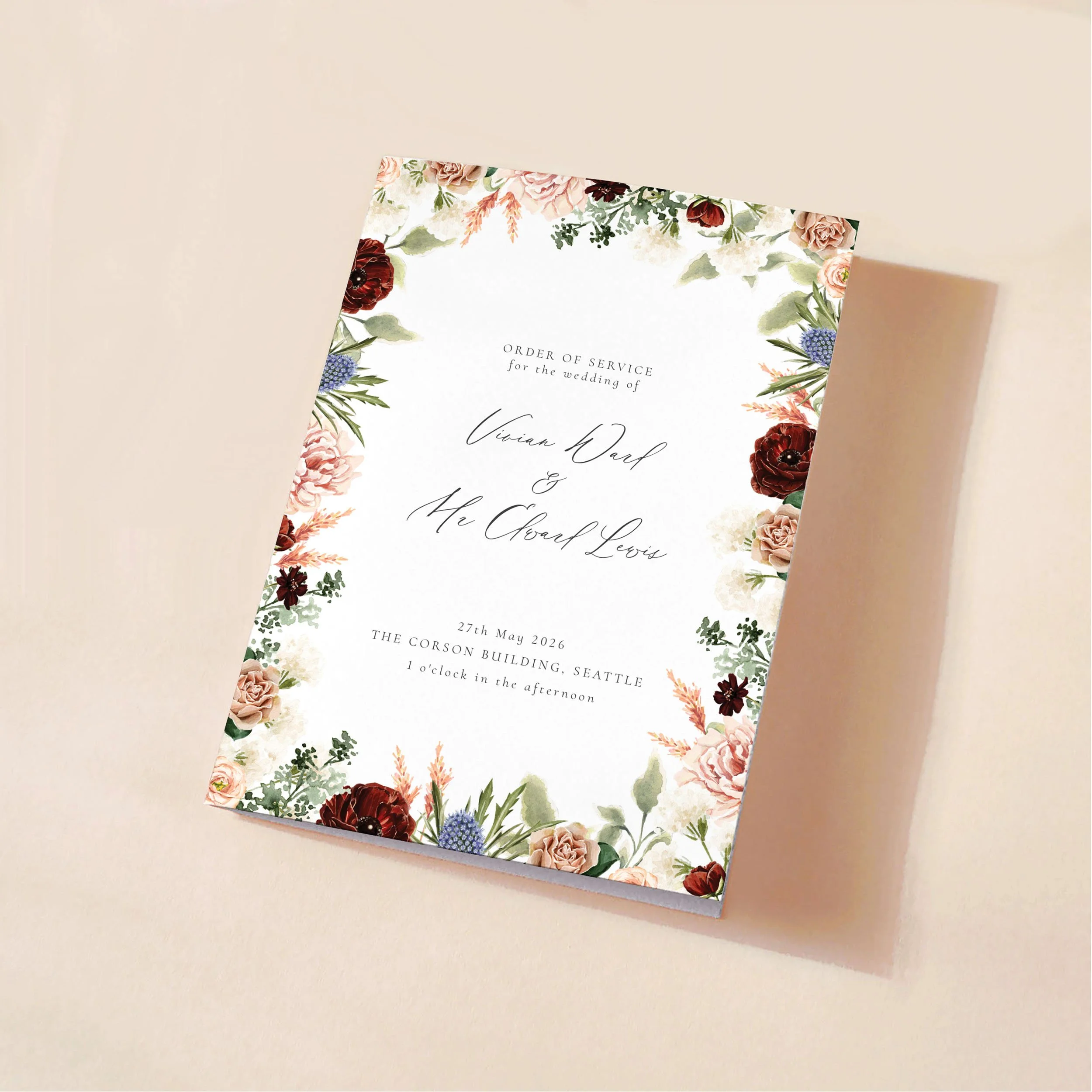 This colourful design by Kim at Pingle Pie is perfect for nature and animal lovers, it was inspired by bright and bold ceremonies held in animal themed settings such as animal parks, museums and even used for a ceremony held at Boston Zoo. Order your very own collection today by using the form at the bottom of this page.