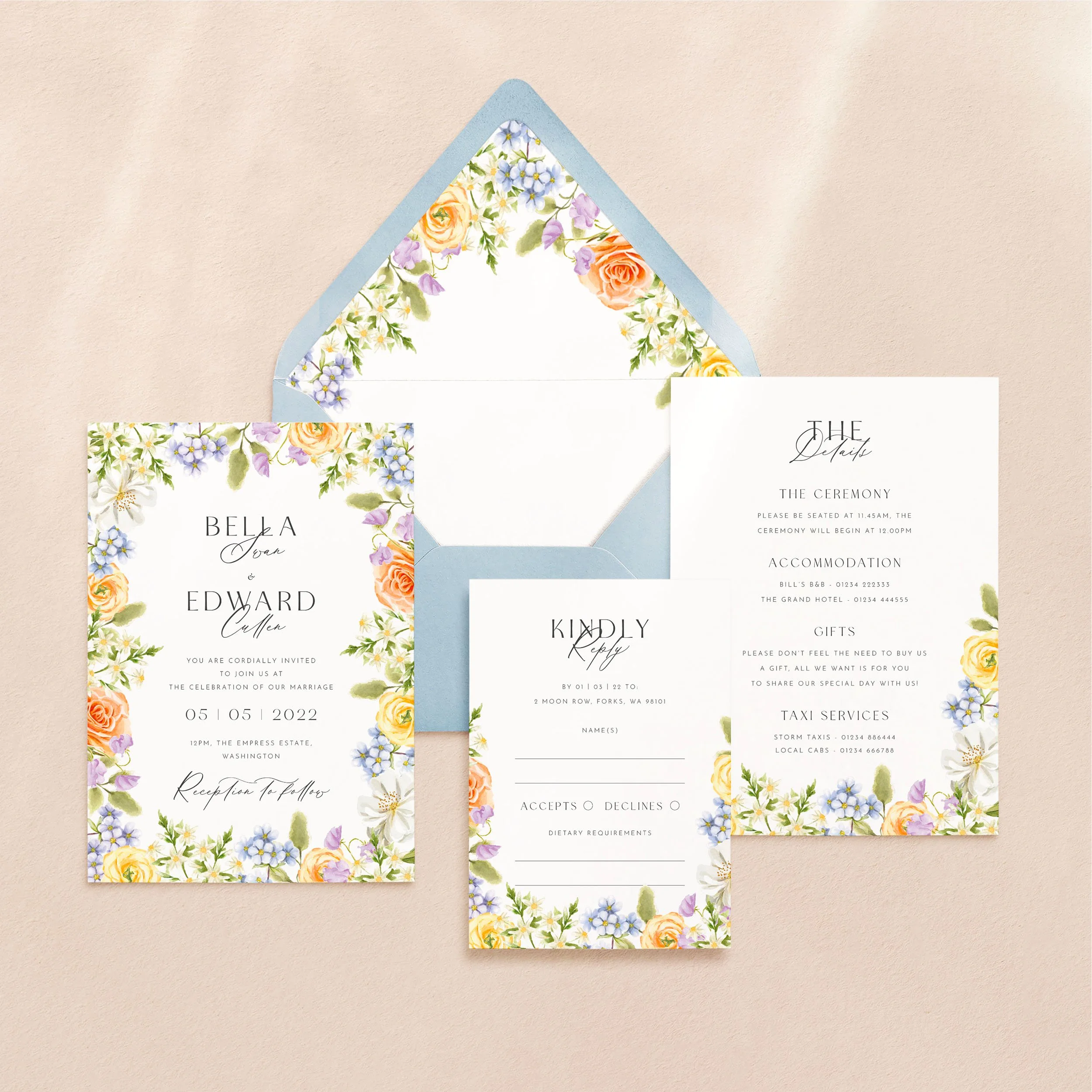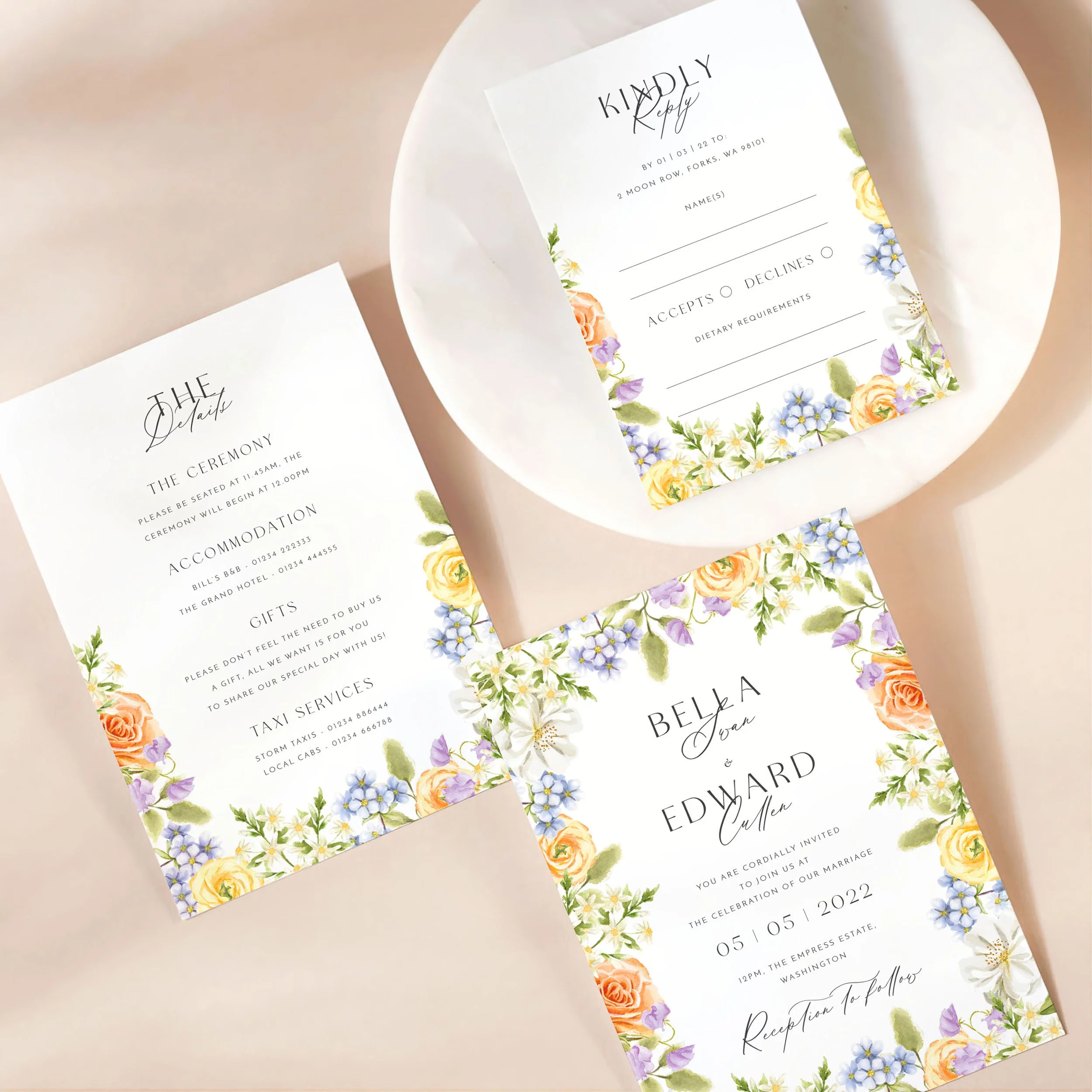 Invitation (5x7”), Details (5x7”) & RSVP (A6)