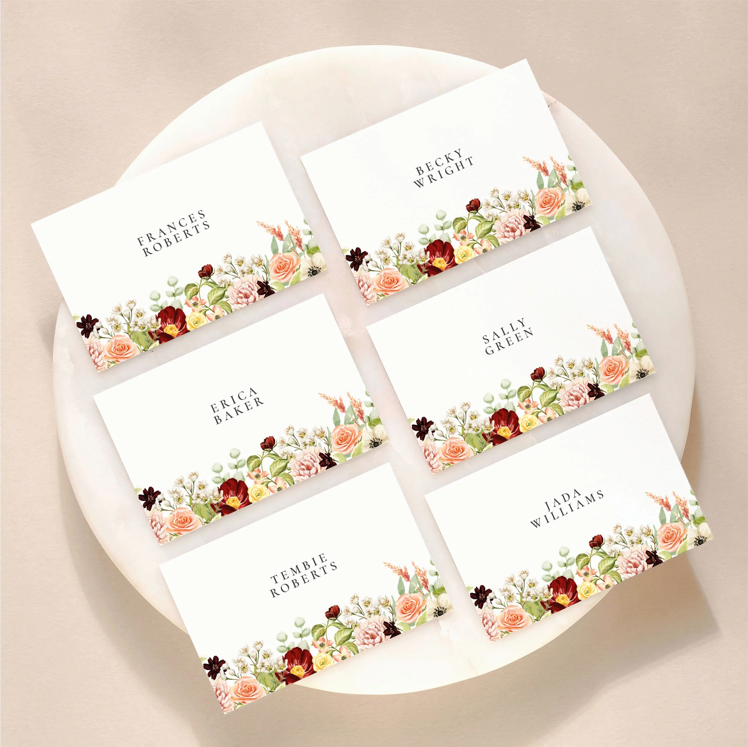 Coloured Place Card Options