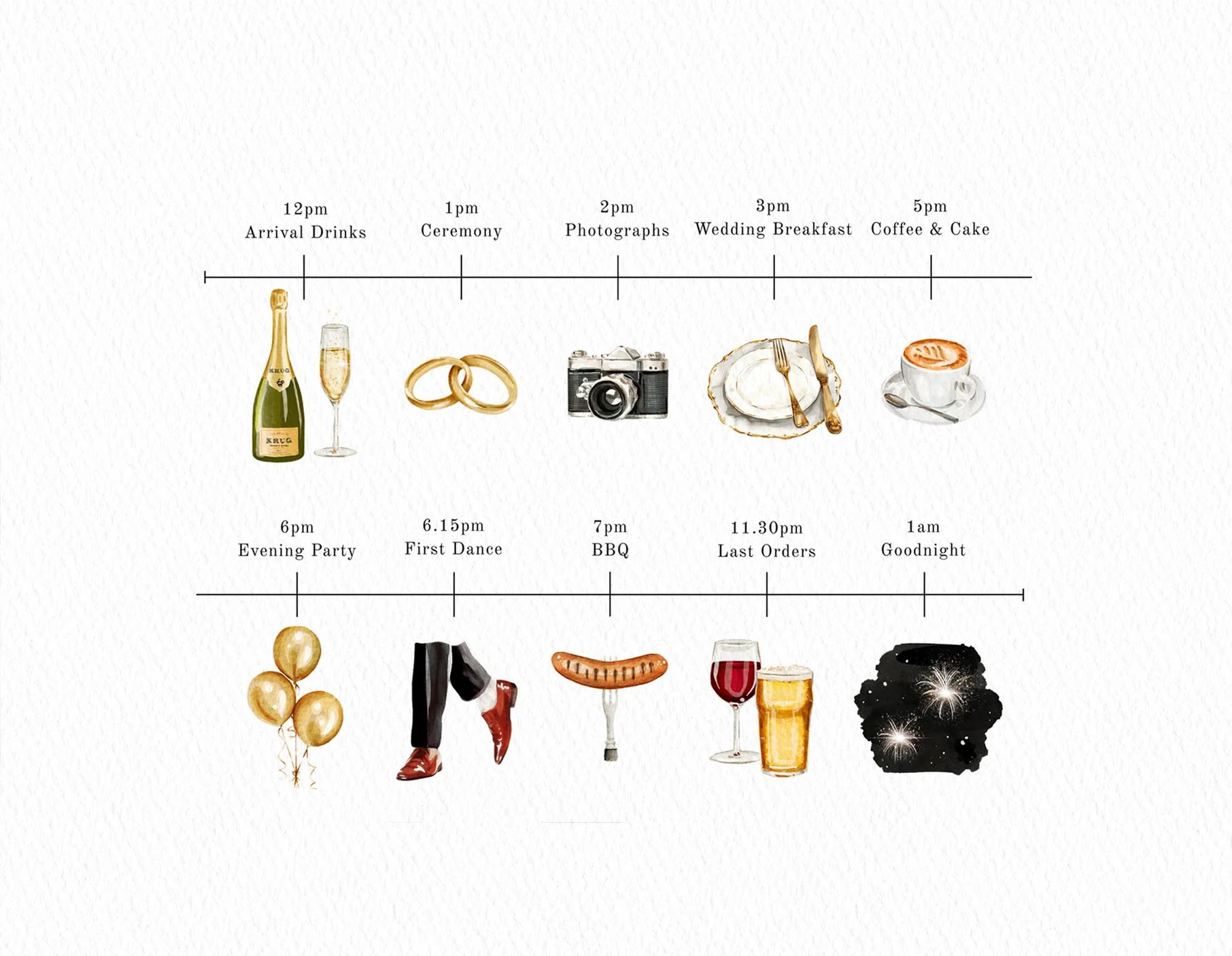 Professionally printed on luxurious paper stocks, this best-selling reception bundle includes the essential stationery for your wedding reception, all at excellent value. You can also add a welcome sign and order of the day timeline at a reduced price, available exclusively when you choose this bundle.