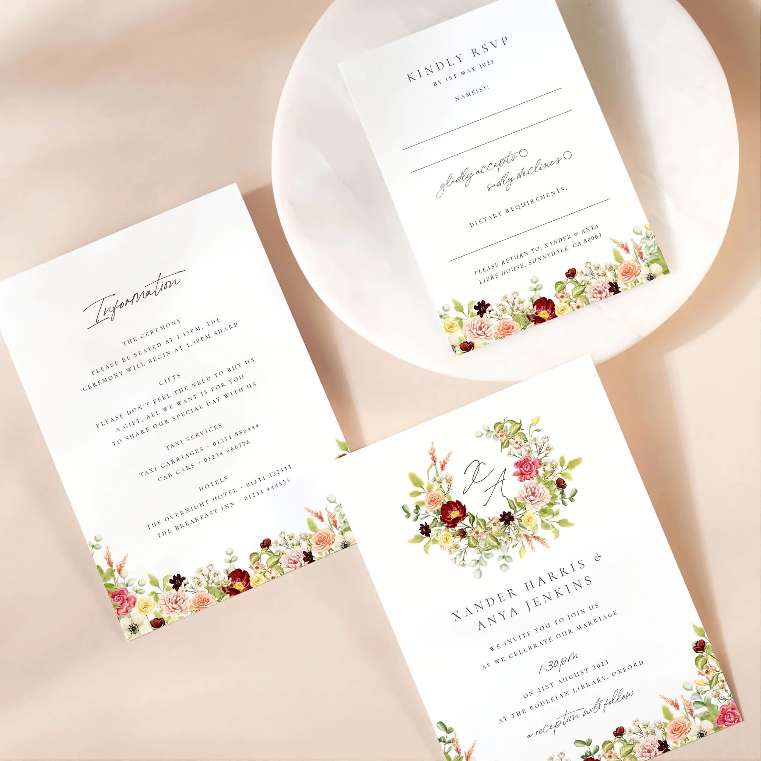 Invitation (5x7”), Details (5x7”) & RSVP (A6)
