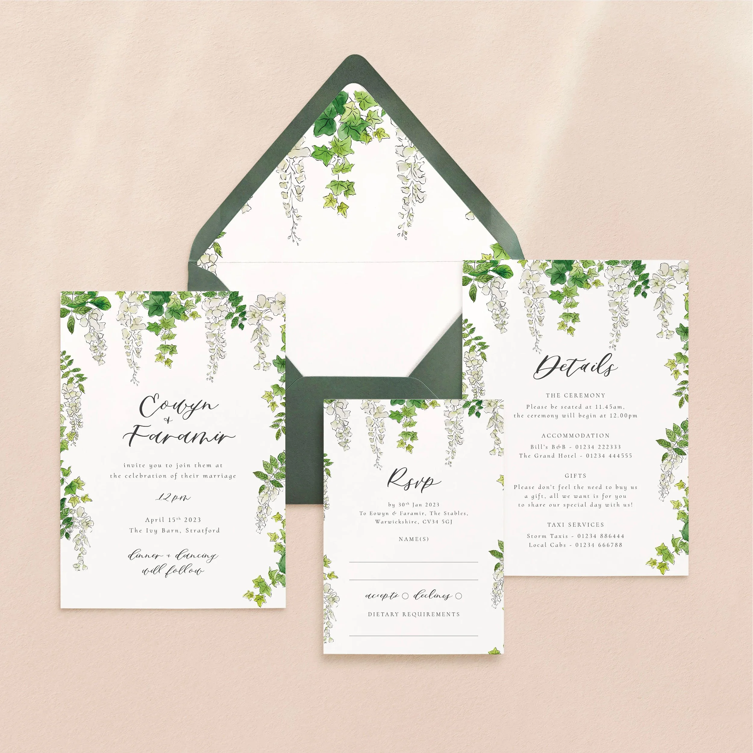Invitation (5x7”), Details (5x7”) & RSVP (A6)