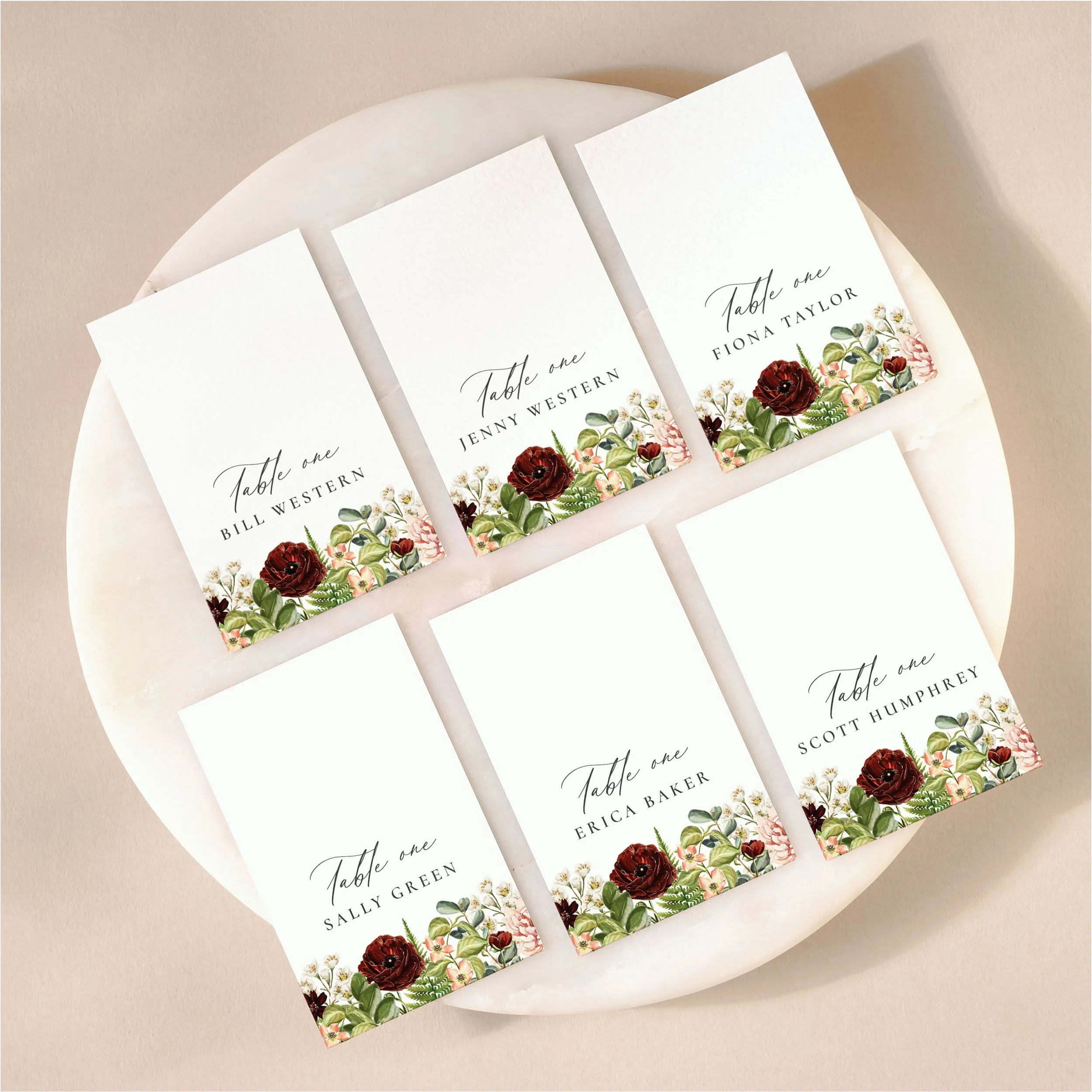 Coloured Place Card Options